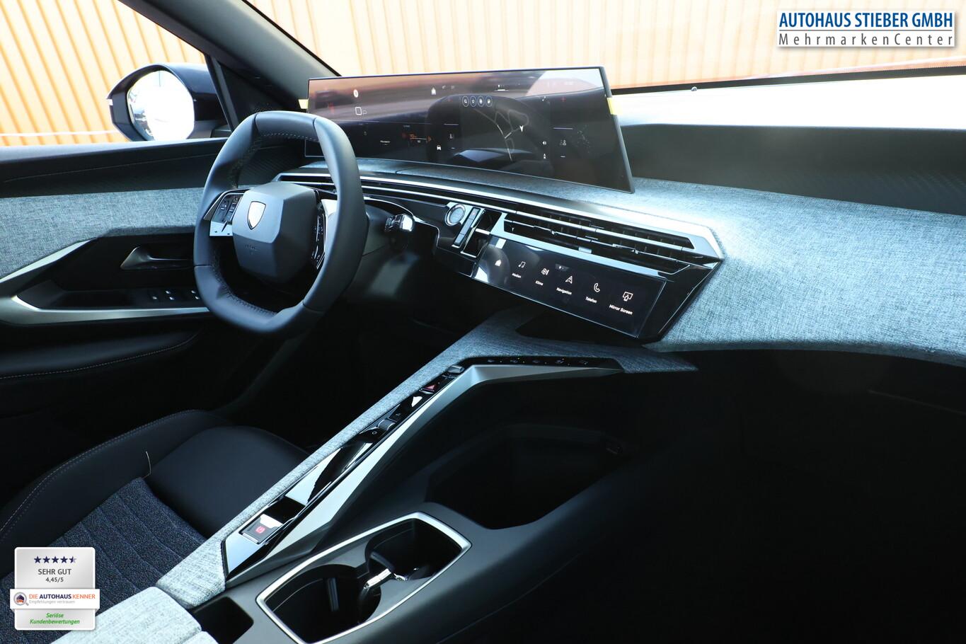 Drive-Assist-Paket (Lenkrad heizbar / Fahrassistenz-System: Autom. Distanzregelung (ACC inkl. Stop&Go-Funktion) / Rückfahrkamera mit 360° Umgebungsansicht / Fahrassistenz-System: Automatische Fahrlichtschaltung inkl. Fernlichtassistent / Fahrassistenz-System: Totwinkel-Assistent (SAM) / Einparkhilfe hinten / Einparkhilfe vorn und hinten / Fahrassistenz-System: Querverkehrs-Assistent Heck (Rear Cross Traffic Alert, RCTA) / Alarmanlage und Safesicherung), Panorama Navigations-Paket (Induktionsladeschale für Smartphone / Radioempfang digital (DAB+) / Freisprecheinrichtung Bluetooth / Navigationssystem i-Connect Advanced / USB-Anschluss (Typ C, 2-fach) / USB-Ladeanschlüsse (2) für 2.Sitzreihe / Audiobedienung am Lenkrad), Reifen-Reparaturkit ohne Kasten, 21"-Panoramadisplay HD, 6 Lautsprecher, Allwetterreifen 225/55 R19, eCall Notrufsystem, Fensterheber elektrisch hinten, Fußraumbeleuchtung LED, Lenkrad (Leder), LM-Felgen 19 Zoll, Schadstoffarm nach Abgasnorm Euro 6e (EU6 EA), Winter-Paket inkl. Frontscheibe heizbar, Gepäckraum-Abtrennung (Netz), Grip-Control mit Bergabfahrhilfe, Komfortsitz vorn links (Sitz vorn links mit ausziehbarer Oberschenkelauflage), Außenspiegel elektr. anklappbar (Außenspiegel anklappbar), Licht- und Regensensor (Scheibenwischer mit Regensensor), Dachhimmel schwarz, Elektr. Bremskraftverteilung, Gepäckraumboden verschiebbar, variabel, Innenspiegel mit Abblendautomatik, Karosserie: 5-türig, Mild-Hybrid 100 kW (Motor 1,2 Ltr. - 100 kW), Mobile Online Dienste MirrorLink und AppinCar (Mirror Screen), Parkbremse elektrisch, Radstand Standard, Sitze vorn höhenverstellbar, Anti-Blockier-System (ABS), Fahrassistenz-System: Aktiver Notbrems-Assistent (Active Safety Brake Plus), Fahrassistenz-System: Kollisionswarnsystem, Antischlupfregelung (ASR), Antriebsart: Frontantrieb, Elektron. Stabilitäts-Programm (ESP, Bosch), Getriebe Automatik - Doppelkupplungsgetriebe (6-Stufen, Hybrid), Klimaautomatik, getrennt regelbar Fahrer-/Beifahrerseite, Airbag Fahrer-/Beifahrerseite, Fensterheber elektr. vorn, links mit Impulsgeber, Isofix-Aufnahmen für Kindersitz, Kopf-Airbag-System, Kopf-Airbag-System hinten, Seitenairbag hinten, Seitenairbag vorn, Seitenscheiben hinten und Heckscheibe getönt, Sitzheizung vorn, Zentralverriegelung / Startanlage Keyless System, Fahrassistenz-System: Verkehrszeichenerkennung, Lenkrad mit Multifunktion, Außenspiegel elektr. verstell- und heizbar, beide, Einschaltautomatik für Fahrlicht, Heckleuchten Voll-LED, Scheinwerfer Eco-LED, Fahrassistenz-System: aktiver Spurassistent (Lenkunterstützung), Fahrassistenz-System: Müdigkeitserkennungs-Sensor, Reifendruck-Kontrollsystem