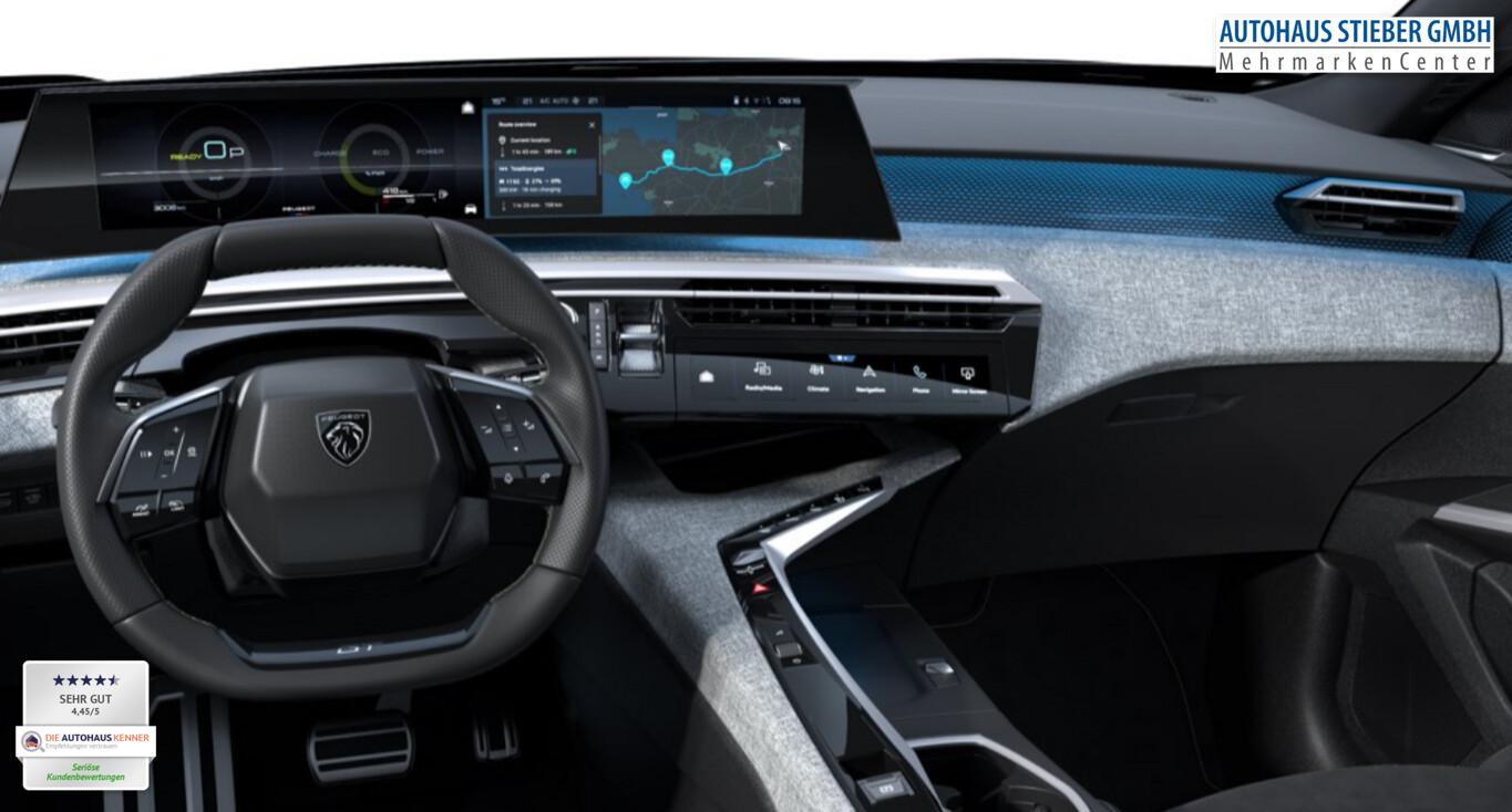 Sound & Air Paket (Frontscheibe Verbundglas / Luftqualitäts-Überwachungssystem und Luftfiltersystem (Clear Cabin) / Sound-System Focal / Schiebe-/Hebedach elektrisch (Glas)), Komfort-Paket (Komfortsitze vorn / Lendenwirbelstütze Sitz vorn links und rechts, elektr. verstellbar / Sitze vorn mit ausziehbarer Oberschenkelauflage / Sitze vorn mit Massagefunktion / Sitz vorn links elektr. verstellbar / Sitz vorn links elektr. verstellbar (mit Memory)), Drive-Assist-Paket Plus (Induktionsladeschale für Smartphone / Fahrassistenz-System: Verkehrszeichenerkennung, erweitert (Geschwindigkeits-Regel-/Begrenzeranlage) / Rückfahrkamera mit 360° Umgebungsansicht / Fahrassistenz-System: Totwinkel-Assistent (SAM) / Fahrassistenz-System: Querverkehrs-Assistent Heck (Rear Cross Traffic Alert, RCTA) / Fahrassistenz-System: Spurhalteassistent (LPA) mit halbautonomen Spurwechselassistent (HIA) / Alarmanlage und Safesicherung), 21"-HD-Panoramadisplay, Ambientenbeleuchtung, Fahrassistenz-System: Aktiver Notbrems-Assistent (Active Safety Brake), Fensterheber elektr. vorn und hinten, Innenspiegel Rahmenlos mit Abblendautomatik, Isofix-Aufnahmen für Kindersitz hinten, Lenkrad (Leder) mit Multifunktion, Leuchtweitenregulierung, LM-Felgen 7,5x19 (Breda, zweifarbig), Navigation in Verbindung mit dem Smartphone (über Apple Carplay / Android Auto /...), Reifen 235/55 R19, Schadstoffarm nach Abgasnorm Euro 6e (EU6 EA), Sitzheizung hinten, USB-Schnittstellen, Panorama Navigations-Paket (Induktionsladeschale für Smartphone / Radioempfang digital (DAB+) / Navigationssystem i-Connect Advanced / USB-Anschluss (Typ C, 2-fach) / USB-Ladeanschlüsse (2) für 2.Sitzreihe), Außenspiegel elektr. anklappbar (Außenspiegel anklappbar), Licht- und Regensensor (Scheibenwischer mit Regensensor), Einparkhilfe vorn und hinten (Einparkhilfe hinten), Dachfarbe schwarz, Elektr. Bremskraftverteilung, Gepäckraumboden verschiebbar, variabel, Heckspoiler schwarz glänzend, Karosserie: 5-türig, Lenkrad heizbar, Mild-Hybrid 107 kW (Motor 1,2 Ltr. - 100 kW), Mittelarmlehne hinten, Mobile Online Dienste Mirror Screen, Pedale Aluminium, Radstand Standard, Sitze vorn höhenverstellbar, Anti-Blockier-System (ABS), Antischlupfregelung (ASR), Antriebsart: Frontantrieb, Elektron. Stabilitäts-Programm (ESP, Bosch), Getriebe Automatik - Doppelkupplungsgetriebe (6-Stufen, Hybrid), Klimaautomatik, getrennt regelbar Fahrer-/Beifahrerseite, Airbag Beifahrerseite abschaltbar, Airbag Fahrer-/Beifahrerseite, Seitenscheiben hinten und Heckscheibe getönt, Sitzheizung vorn, Zentralverriegelung / Startanlage Keyless System, Zentralverriegelung mit Fernbedienung, Kofferraumdeckel / Heckklappe elektr. betätigt (öffnen + schliessen, sensorgesteuert), Fahrassistenz-System: Autom. Distanzregelung (ACC inkl. Stop&Go-Funktion), Fahrassistenz-System: Berganfahrhilfe, Servolenkung elektrisch, Außenspiegel elektr. verstell- und heizbar, beide, Fahrassistenz-System: Fernlichtassistent, Scheinwerfer Full-LED, Tagfahrlicht LED, Fahrassistenz-System: aktiver Spurassistent (Lenkunterstützung), Fahrassistenz-System: Müdigkeitserkennungs-Sensor, Reifendruck-Kontrollsystem