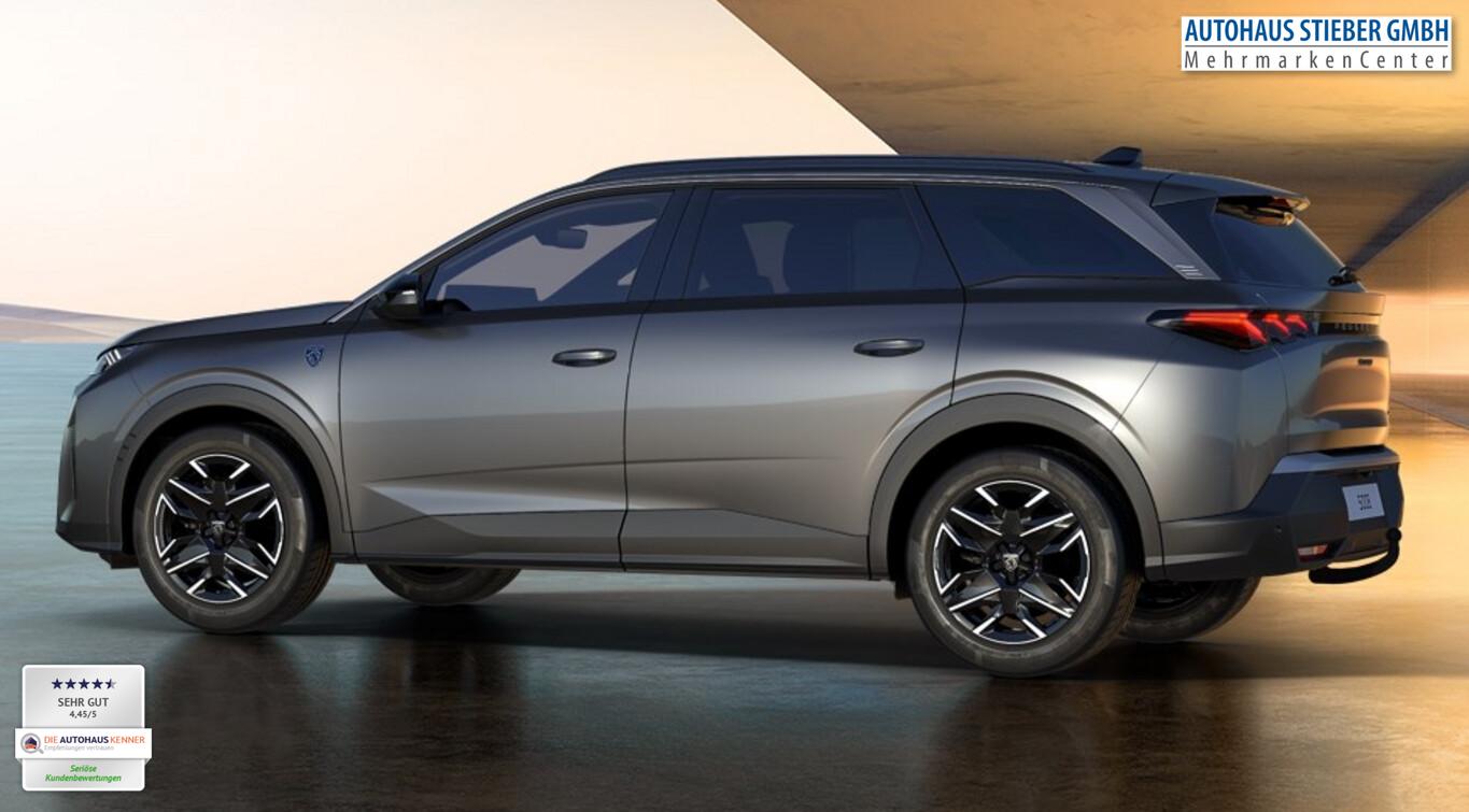 Drive-Assist-Paket Plus (Fahrassistenz-System: Verkehrszeichenerkennung, erweitert (Geschwindigkeits-Regel-/Begrenzeranlage) / Rückfahrkamera mit 360° Umgebungsansicht / Fahrassistenz-System: Totwinkel-Assistent (SAM) / Fahrassistenz-System: Querverkehrs-Assistent Heck (Rear Cross Traffic Alert, RCTA) / Fahrassistenz-System: Spurhalteassistent (LPA) mit halbautonomen Spurwechselassistent (HIA) / Alarmanlage und Safesicherung), Anhängerkupplung (Kugelkopf senkrecht demontierbar, Ausführung verbessert), 21"-Panoramadisplay, 6 Lautsprecher, Ambientenbeleuchtung, Dachreling schwarz, Einparkhilfe vorn, Fahrmodusschalter, Fensterheber elektr. hinten, Fensterzierleisten schwarz, Laderaumbeleuchtung, Lendenwirbelstütze Sitz vorn links, LM-Felge 19 Zoll, Radioempfang digital (DAB+), Reifen 225/55 R19, Schadstoffarm nach Abgasnorm Euro 6e (EU6 EA), Schiebe-/Hebedach elektrisch (Glas), Smartphone Schnittstelle kabellos (Apple Car Play/Android Auto), Panorama Navigations-Paket (Induktionsladeschale für Smartphone / Radioempfang digital (DAB+) / Freisprecheinrichtung Bluetooth / Navigationssystem i-Connect Advanced / USB-Anschluss (Typ C, 2-fach) / USB-Anschluss (Typ C, 3-fach) / Audiobedienung am Lenkrad), Außenspiegel und Spiegelfuss in Perla-Nera-Schwarz, Dachfarbe schwarz, Dachhimmel schwarz, Gepäckraumboden verschiebbar, variabel, Getränkehalter vorn, Karosserie: 5-türig, Kindersicherung elektrisch, Lenkrad heizbar, Mittelarmlehne hinten, Mobile Online Dienste Mirror Screen, Parkbremse elektrisch, Pedale Aluminium, Radstand Standard, Sitze vorn höhenverstellbar, Sonnenblenden mit Make-up-Spiegel, Steckdose (12V-Anschluß) im Koffer-/Laderaum, Warnanlage für Sicherheitsgurte, Anti-Blockier-System (ABS), Fahrassistenz-System: Aktiver Notbrems-Assistent (Active Safety Brake Plus), Antriebsart: Frontantrieb, Elektron. Stabilitäts-Programm (ESP, Bosch), Getriebe Automatik - Doppelkupplungsgetriebe (6-Stufen, Hybrid), Klimaautomatik, getrennt regelbar Fahrer-/Beifahrerseite, Airbag Beifahrerseite abschaltbar, Airbag Fahrer-/Beifahrerseite, Fensterheber elektr. vorn, links mit Impulsgeber, Isofix-Aufnahmen für Kindersitz, Kopf-Airbag-System, Kopf-Airbag-System hinten, Mittelarmlehne vorn, Rücksitzbank geteilt/klappbar automatisch (40:20:40), Seitenairbag vorn, Seitenscheiben hinten und Heckscheibe getönt, Sitzheizung vorn, Zentralverriegelung / Startanlage Keyless System, Zentralverriegelung mit Fernbedienung, Kofferraumdeckel / Heckklappe elektr. betätigt (öffnen + schliessen, sensorgesteuert), Fahrassistenz-System: Autom. Distanzregelung (ACC inkl. Stop&Go-Funktion), Fahrassistenz-System: Verkehrszeichenerkennung, Peugeot Connect-Box / SOS-Taste (Notruf für Lokalisierung Fahrzeug), Lenkrad mit Multifunktion, Servolenkung elektrisch, Außenspiegel elektr. anklappbar, Außenspiegel elektr. verstell- und heizbar, beide, Fahrassistenz-System: Fernlichtassistent, Scheibenwischer mit Regensensor, Scheinwerfer Full-LED, Einparkhilfe hinten, Fahrassistenz-System: aktiver Spurassistent (Lenkunterstützung), Fahrassistenz-System: Müdigkeitserkennungs-Sensor, Reifendruck-Kontrollsystem