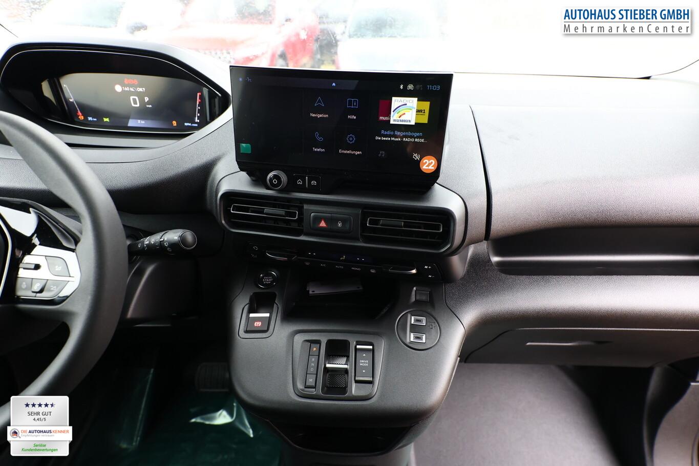 Holzboden Laderaum mit Antirutschprofil, Visibility-Paket (Einschaltautomatik für Fahrlicht / Scheibenwischer mit Regensensor), 4 Lautsprecher, 6 Verzurrösen im Laderaum, Außengriff in schwarz, Außenspiegel elektr. verstell-, heiz- und anklappbar, Bluetooth-Freisprechanlage, Comfort-Paket ohne Multiflex-Kabine, Einparkhilfe seitlich, Einschaltautomatik für Fahrlicht, Fahrassistenz-System: Notbremsassistent (Active Safety Brake), Fahrassistenz-System: Spurhalteassistent, Fahrassistenz-System: Totwinkel-Assistent (SAM), Gurtwarnanlage, Handschuhfach oben und unten, mit Klappe, Induktionsladeschale für Smartphone, Infotainment-System "IVI HIGH" mit 10" Touchscreen Navigatonssystem, DAB, Bluetooth-Schnittstelle, Innenspiegel, digital (Dynamic Surround View), Klimaautomatik, getrennt regelbar Fahrer-/Beifahrerseite, Kombiinstrument digital 10 Zoll, Lenkrad mit Multifunktion, Multikollisionsbremse, Nebelscheinwerfer, Parkbremse elektrisch, Radioempfang digital (DAB), Reifen 205/60 R16, Rückfahrkamera mit 180° Umgebungsansicht, Scheibenwischer mit Regensensor, Smartphone-Schnittstelle (Apple CarPlay / Android Auto), USB-Anschluss, Wegfahrsperre, Zentralverriegelung / Startanlage Keyless System, Zentralverriegelung mit Fernbedienung, Elektron. Stabilitäts-Programm (ESP, Bosch) (Antischlupfregelung (ASR)), Fensterheber elektrisch vorn (Fensterheber elektrisch vorn links / Fensterheber elektrisch vorn rechts), Safety-Paket (Fahrassistenz-System: Verkehrszeichenerkennung / Geschwindigkeits-Regelanlage (Tempomat) inkl. Geschwindigkeits-Begrenzeranlage / Einschaltautomatik für Fahrlicht / Fahrassistenz-System: Automatische Fahrlichtschaltung inkl. Fernlichtassistent / Fahrassistenz-System: Müdigkeitserkennungs-Sensor), Außenspiegel mit Abdeckkappen schwarz, Beifahrereinzelsitz, Heckflügeltüren ohne Verglasung, Karosserie/Aufbau: Kasten, Motor 1,5 Ltr. - 96 kW Blue-HDI FAP, Radstand 2975 mm, Schaltpunktanzeige, Schiebetür rechts, SCR-System (AdBlue-Technologie), Seitenschutzleisten schwarz, Sitz vorn links neigungsverstellbar, Stahlfelgen 7x16, Anti-Blockier-System (ABS), Antriebsart: Frontantrieb, Erhöhte Nutzlast, Getriebe Automatik - (8-Stufen), Airbag Beifahrerseite, Airbag Beifahrerseite abschaltbar, Airbag Fahrerseite, Kopf-Airbag-System, Seitenairbag vorn, Servolenkung elektrisch, Tagfahrlicht, Einparkhilfe hinten, Reifendruck-Kontrollsystem, Rußpartikelfilter, Start/Stop-Anlage