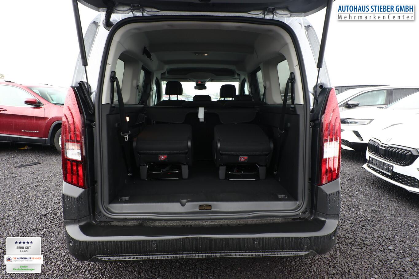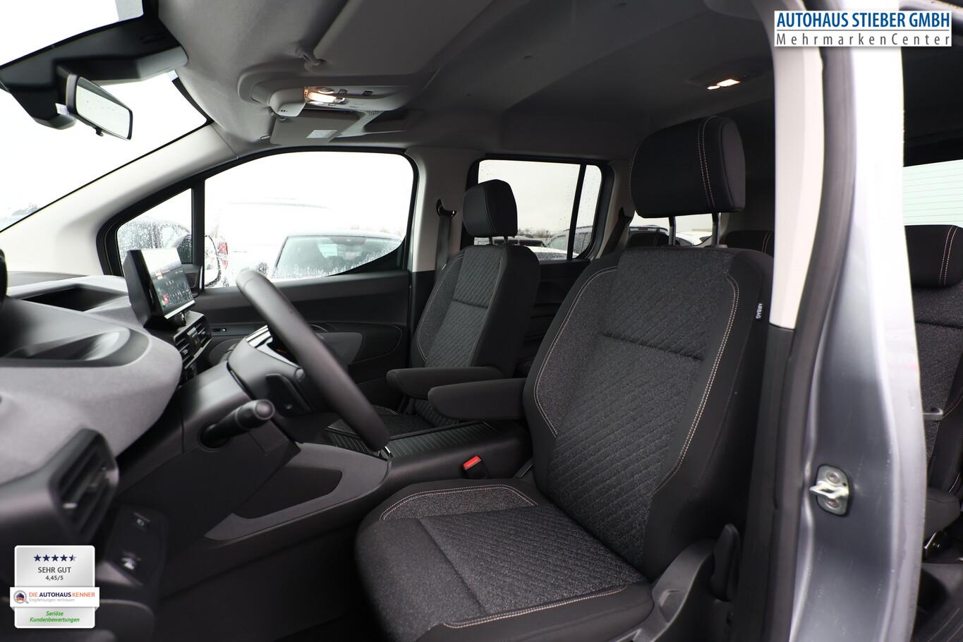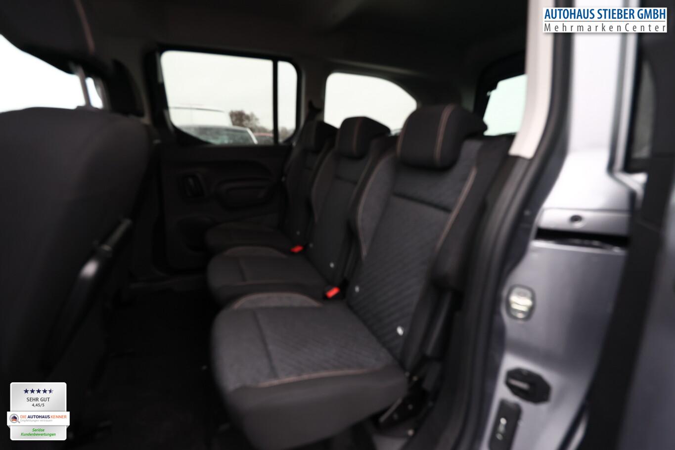 2 Zusatzsitze (7 Sitze), Style-Paket (Heckklappe, Scheibe ausstellbar / Heckscheibe aufstellbar / Heckscheibe heizbar / Heckscheibenwischer / Kindersicherung elektrisch / Schiebetüren links und rechts, mit elektr. Fensterhebern / Verkleidung Schiebetürschiene in Wagenfarbe / LM-Felgen 6,5x16 (Taranaki) / Fensterheber elektrisch hinten / Isofix-Aufnahmen für Kindersitz / Rücksitzbank klappbar 1/3-2/3 / Seitenscheiben hinten dunkel getönt und Heckscheibe stärker getönt / Dachreling schwarz, glänzend / Außenspiegel elektr. verstell-, heiz- und anklappbar), Anschlussgarantie 1 Jahre, Audiosystem mit 10 Zoll Farb-Touchscreen, Fensterheber elektrisch vorn, Lenkrad mit Multifunktion, Navigation in Verbindung mit dem Smartphone (über Apple Carplay / Android Auto /...), Reifen 205/60 R16, Schadstoffarm nach Abgasnorm Euro 6e (EU6 EA), Sicht-Paket (Einschaltautomatik für Fahrlicht / Scheibenwischer mit Regensensor), Sitz vorn links höhenverstellbar (Lendenwirbelstütze Sitz vorn links, verstellbar / Mittelarmlehne für Fahrersitz), Elektron. Stabilitäts-Programm (ESP, Bosch) (Antischlupfregelung (ASR)), Airbag Fahrer-/Beifahrerseite (Airbag Beifahrerseite), Sicherheits-Paket Plus (Fahrassistenz-System: Auffahrwarnsystem mit Bremsfunktion / Fahrassistenz-System: Verkehrszeichenerkennung / Fahrassistenz-System: Verkehrszeichenerkennung, erweitert (Geschwindigkeits-Regel-/Begrenzeranlage) / Geschwindigkeits-Regelanlage (Tempomat) inkl. Geschwindigkeits-Begrenzeranlage / Fahrassistenz-System: Fernlichtassistent / Fahrassistenz-System: Müdigkeitserkennungs-Sensor / Fahrassistenz-System: Spurassistent (AFIL) / Sicherheits-Paket), Ablagefach über den Sonnenblenden, Gepäckraumabdeckung / Rollo, Karosserie: 5-türig, Kombiinstrument digital (10,0 Zoll), Mobile Online Dienste Mirror Screen, Motor 1,5 Ltr. - 96 kW Blue-HDI FAP, Parkbremse elektrisch, Radstand 2975 mm, Anti-Blockier-System (ABS), Getriebe Automatik - (8-Stufen), Klimaanlage, Kopf-Airbag-System, Kopf-Airbag-System hinten, Fahrassistenz-System: Berganfahrhilfe, Lenkrad (Leder), Nebelscheinwerfer, Tagfahrlicht LED, Einparkhilfe hinten, Reifendruck-Kontrollsystem