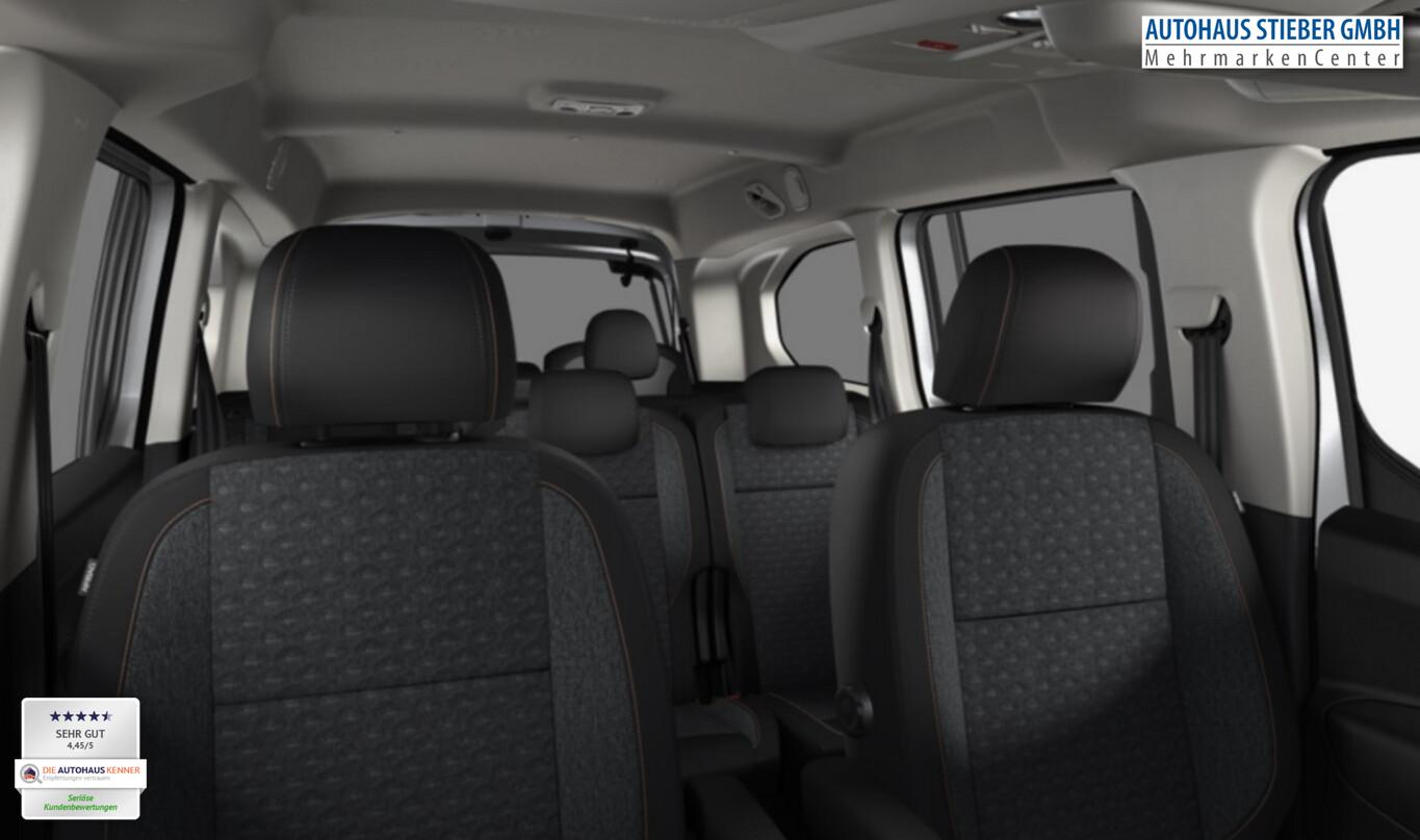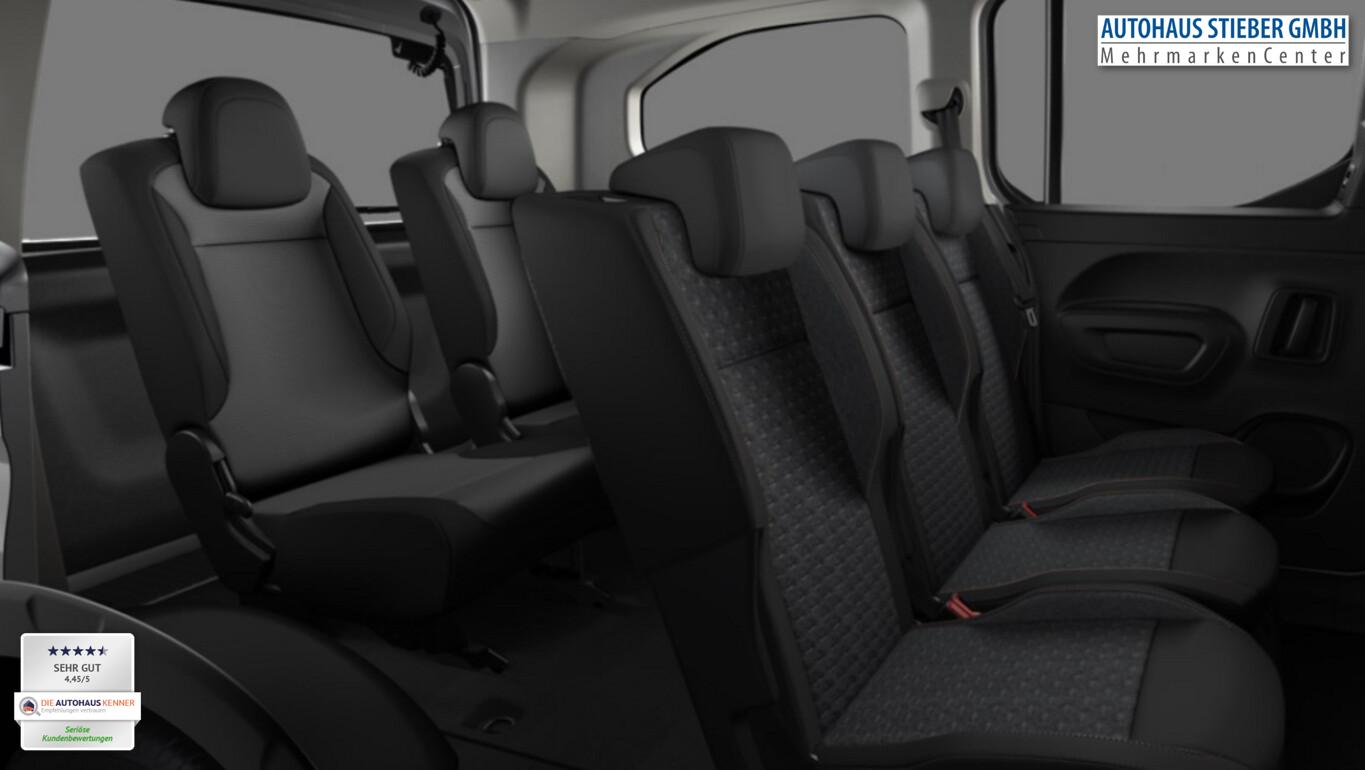 2 Zusatzsitze (7 Sitze), Connect-Paket Plus (Rückfahrkamera mit 180° Umgebungsansicht / Peugeot Connect-Box / SOS-Taste (Notruf für Lokalisierung Fahrzeug) / Fahrassistenz-System: Totwinkel-Assistent (SAM) / Einparkhilfe hinten / Einparkhilfe vorn / Einparkhilfe vorn und hinten), Techno-Paket Plus (Induktionsladeschale für Smartphone / Infotainment-System i-Connect Advanced / Radioempfang digital (DAB+) / Steckdose 230V / Audio-Navigationssystem NAC 3-D, mit Farbdisplay / Freisprecheinrichtung Bluetooth / USB-/Audio-Schnittstelle (Typ C, 2-fach) / Grip-Control / Zentralverriegelung / Startanlage Keyless System / Fahrassistenz-System: Bergabfahrhilfe), Winter-Paket (Sitzheizung vorn / Frontscheibe heizbar), Fahrassistenz-System: Müdigkeitserkennungs-Sensor, Fahrassistenz-System: Spurhalteassistent, Fenster in der dritten Reihe Fest, Fensterheber elektrisch vorn, Klapptische an den Rückseiten der Vordersitze, Reifen 205/55 R17, Seitenairbag vorn, Zentralverriegelung, 2.Sitzreihe mit Einzelsitzen (Isofix-Aufnahmen für Kindersitz), Heckklappe, Scheibe ausstellbar (Heckscheibe aufstellbar / Heckscheibe heizbar / Heckscheibenwischer / Seitenscheiben hinten dunkel getönt und Heckscheibe stärker getönt), Komfort-Paket (Schiebetüren links und rechts, mit elektr. Fensterhebern / Fensterheber elektrisch hinten / Außenspiegel elektr. verstell-, heiz- und anklappbar), Sicht-Paket (Einschaltautomatik für Fahrlicht / Scheibenwischer mit Regensensor), Sitz vorn links höhenverstellbar (Lendenwirbelstütze Sitz vorn links, verstellbar / Mittelarmlehne für Fahrersitz), Elektron. Stabilitäts-Programm (ESP, Bosch) (Antischlupfregelung (ASR)), Airbag Fahrer-/Beifahrerseite (Airbag Beifahrerseite), Ablagefach über den Sonnenblenden, Gepäckraumabdeckung / Rollo, Karosserie: 5-türig, Kindersicherung elektrisch, Kombiinstrument digital (10,0 Zoll), Mittelkonsole mit Ablagefach, Mobile Online Dienste Mirror Screen, Motor 1,5 Ltr. - 96 kW Diesel FAP, Parkbremse elektrisch, Radstand 2975 mm, Anti-Blockier-System (ABS), Fahrassistenz-System: Aktiver Notbrems-Assistent (Active Safety Brake), LM-Felgen 7x17 (Aoraki), Getriebe Automatik - (8-Stufen), Klimaautomatik, getrennt regelbar Fahrer-/Beifahrerseite, Kopf-Airbag-System, Kopf-Airbag-System hinten, Bordcomputer, Dachreling schwarz, glänzend, Fahrassistenz-System: Berganfahrhilfe, Nebelscheinwerfer, Scheinwerfer Eco-LED, Tagfahrlicht LED, Reifendruck-Kontrollsystem, Rußpartikelfilter, Start/Stop-Anlage