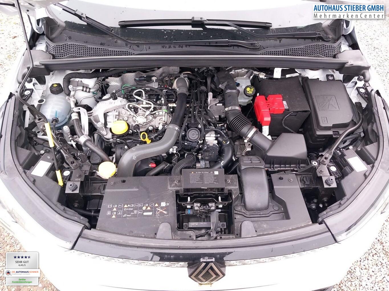 Winter-Paket (Lenkrad heizbar / Sitzheizung vorn), Driving Assist-Paket (Mittelkonsole mit offenem Staufach, freischwebend / Adaptive Geschwindigkeitsregelanlage (ACC)), Verglasung hinten stark abgedunkelt, 3. Schlussleuchte, Außenspiegel schwarz, Fahrassistenz-System: Spurhalteassistent, Fensterheber elektr. mit Impulsgeber vorn, Fensterheber mit Impulsgeber hinten, Infotainment-System: OpenR link (10,4" Touchscreen, DAB+), Intelligenter Geschwindigkeitsassistent (ISA), Lenkrad (Leder) mit Multifunktion, LM-Felgen 18 Zoll, Navigation in Verbindung mit dem Smartphone (über Apple Carplay / Android Auto /...), Rückfahrkamera, Tagfahrlicht mit Einschaltautomatik, Geschwindigkeits-Begrenzeranlage, Heckscheibe heizbar, Induktionsladeschale für Smartphone, Innenbeleuchtung LED, Innenspiegel mit Abblendautomatik, Karosserie: 5-türig, Kombiinstrument digital (7,0 Zoll), Kopfstützen hinten verstellbar, Lenksäule (Lenkrad) höhenverstellbar, Lenksäule (Lenkrad) längsverstellbar, Mild-Hybrid 116 kW (Motor 1,3 Ltr. - 116 kW TCE), Otto-Partikelfilter (GPF), Parkbremse elektrisch, Radioempfang digital (DAB+), Radstand 2639 mm, Sitz vorn links höhenverstellbar, Sitz vorn rechts höhenverstellbar, Sitzbezug / Polsterung: Stoff, Türgriffe außen Wagenfarbe, Warnanlage für Sicherheitsgurte, Anti-Blockier-System (ABS), Bremsassistent, Antriebsart: Frontantrieb, Elektron. Stabilitäts-Programm (ESP), Getriebe 7-Gang - Doppelkupplungsgetriebe, Klimaautomatik, Airbag Beifahrerseite abschaltbar, Airbag Fahrer-/Beifahrerseite, Isofix-Aufnahmen für Kindersitz, Isofix-Aufnahmen für Kindersitz an Beifahrersitz, Kopf-Airbag-System vorn, Rücksitzbank geteilt/klappbar (1/3-2/3), Seitenairbag vorn, Zentralverriegelung / Startanlage Handsfree Entry & Drive, Fahrassistenz-System: Abstandswarner, Fahrassistenz-System: Berganfahr-Assistent (HSA), Fahrassistenz-System: Sicherheitssystem mit automatischem Notruf (ERA GLONASS / eCall), Servolenkung elektrisch, Außenspiegel elektr. anklappbar, Außenspiegel elektr. verstell- und heizbar, Blinkleuchte in Außenspiegel integriert, Fahrassistenz-System: Fernlichtassistent, Heckleuchten LED, C-förmig mit Signature, Licht- und Regensensor, Scheibenwischer mit Regensensor, Scheinwerfer Full-LED mit LED-Signatur (Pure Vision), Einparkhilfe hinten, Fahrassistenz-System: Müdigkeitserkennungs-Sensor, Reifendruck-Kontrollsystem, Start/Stop-Anlage