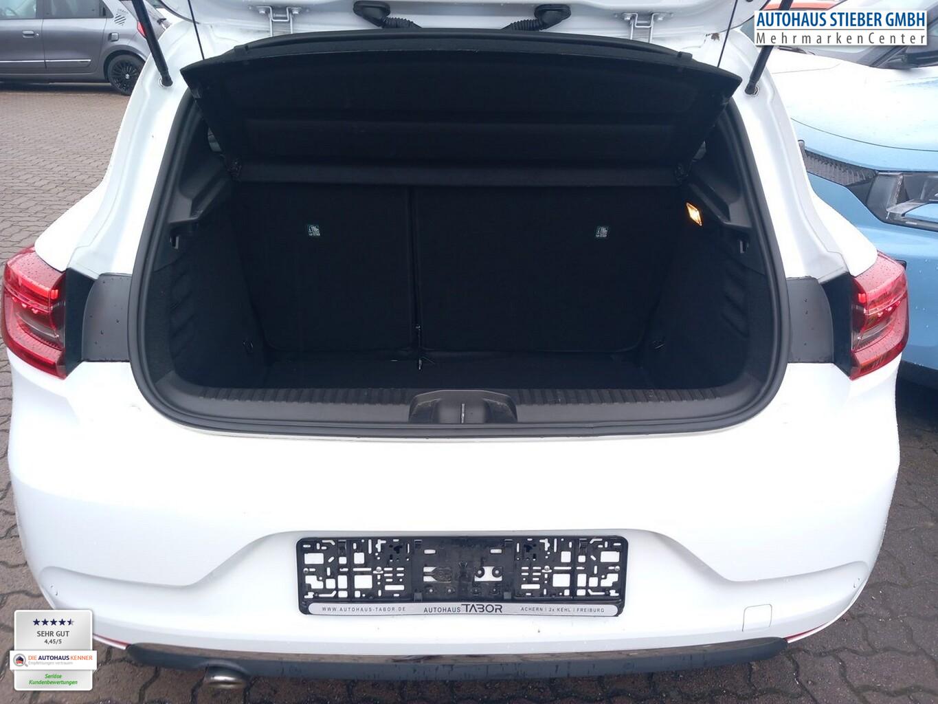 Lackierung Arktis-Weiß, LM-Felgen 16 Zoll, Reifen 195/55 R16, Schließ-/Startanlage Keyless System, Sicherheitsgurte vorn höhenverstellbar, Tagfahrlicht LED, Komfort-Paket Business (Sonnenblenden mit Spiegel (beleuchtet) / Klimaautomatik / Mittelarmlehne vorn / Außenspiegel elektr. anklappbar / Außenspiegel elektr. verstell- und heizbar / Licht- und Regensensor), Multimedia-System Easy Link mit Navigationssystem (Touchscreen 7") (Radioempfang digital (DAB+) / Freisprecheinrichtung (Bluetooth) mit Sprachsteuerung / USB-Anschluss inkl. AUX-IN-Anschluss (Plug & Music) / Audio-/Radio-Fernbedienung am Lenkrad), Fahrassistenz-System: Aktiver Notbrems-Assistent mit Fußgängererkennung (Fahrassistenz-System: Fußgängererkennung), Auspuffblende verchromt, Außenspiegelgehäuse Black Pearl Schwarz, Automatische Türverriegelung, Dachantenne im Haifischflossen-Design, Dachhimmel Grau, Energierückgewinnung (Energy Smart Management), Fensterzierleisten verchromt, Geschwindigkeits-Begrenzeranlage, Heckscheibe heizbar, Innenspiegel mit Abblendautomatik, Karosserie: 5-türig, Kombiinstrument digital, Kopfstützen verstellbar, Lenksäule (Lenkrad) höhenverstellbar, Motor 1,0 Ltr. - 67 kW TCE, Parkbremse elektrisch mit Auto-Hold-Funktion, Reifen-Reparaturkit, Schadstoffarm nach Abgasnorm Euro 6d, Schaltpunktanzeige, Sitz vorn links höhenverstellbar, Sitz vorn rechts höhenverstellbar, Sitzbezug / Polsterung: Stoff / Leder-Optik, Türgriffe außen Wagenfarbe, Warnanlage für Sicherheitsgurte, Anti-Blockier-System (ABS), Bremsassistent, Elektron. Stabilitäts-Programm (ESP), Getriebe Automatik stufenlos - X-Tronic-CVT, Airbag Beifahrerseite abschaltbar, Airbag Fahrer-/Beifahrerseite, Fensterheber elektrisch hinten, Fensterheber elektrisch vorn, Isofix-Aufnahmen für Kindersitz, Kopf-Airbag-System (Windowbag), Rücksitzbank geteilt/klappbar (1/3-2/3), Seitenairbag vorn, Verglasung hinten stark abgedunkelt, Zentralverriegelung mit Fernbedienung, Eco Mode (Fahrmodusschalter), Fahrassistenz-System: Abstandswarner, Fahrassistenz-System: Verkehrszeichenerkennung mit Geschwindigkeits-Warnanzeige, Geschwindigkeits-Regelanlage (Tempomat), Rückfahrkamera, Fahrassistenz-System: Sicherheitssystem mit automatischem Notruf (ERA GLONASS / eCall), Heckleuchten LED, C-förmig mit Signature, Scheinwerfer Full-LED mit LED-Signatur (Pure Vision), Fahrassistenz-System: Spurhalteassistent Aktiv, Fahrassistenz-System: Spurwechsel-Warnsystem, Reifendruck-Kontrollsystem, Start/Stop-Anlage