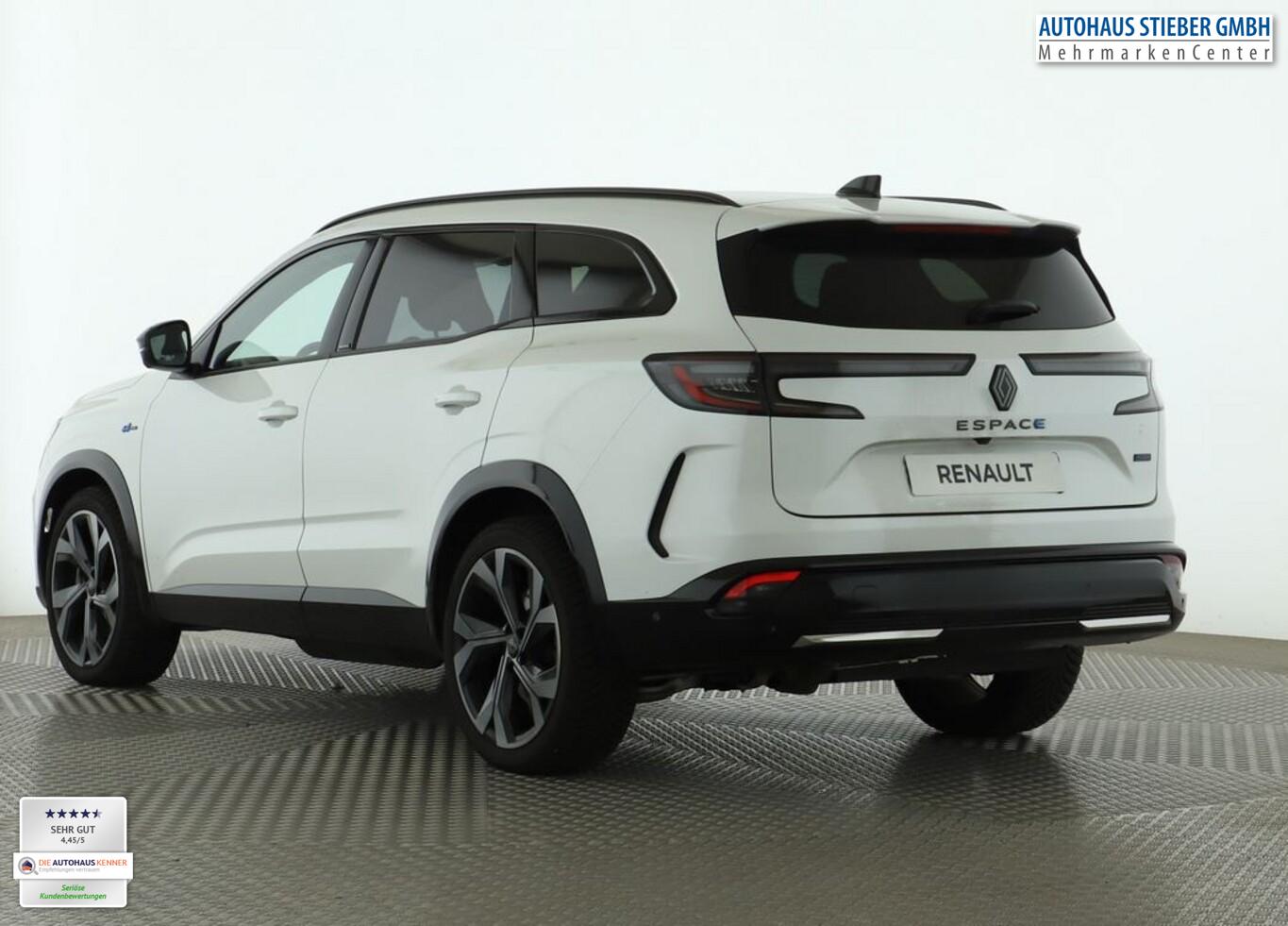 Winter-Komfort-Paket inkl. Frontscheibe heizbar (Komfort-Kopfstützen vorn / Lendenwirbelstütze Sitz vorn links / Sitz vorn links mit Massagefunktion / Sitz vorn links elektr. verstellbar (6-fach) / Sitz vorn rechts elektr. verstellbar (6-fach) / Sitzheizung vorn), Panoramadach (vollverglaste Dachfläche), Matrix-LED-Scheinwerfer, City-Premium-Paket (Einstiegsbeleuchtung mit Logo Projektionsfunktion / Kamerasystem Around View 360° / Außenspiegel elektr. verstell-, heiz- und anklappbar, mit Memory / Easy-Park-Assistent / Einparkhilfe vorn, hinten und seitlich mit Rückfahrkamera), Advanced Driving Assist-Paket (Fahrassistenz-System: Active Driver Assist / Lenkrad heizbar / Fahrassistenz-System: Querverkehrs-Assistent hinten mit Fußgänger Notbremssystem), Head-up-Display, Fahrassistenz-System: Adaptive Geschwindigkeits-Regelanlage (ACC), LM-Felgen 20", Reifen 235/45 R20, Schadstoffarm nach Abgasnorm Euro 6e (EU6 EA), Motor 1,2 Ltr. - 96 kW E-Tech Hybrid (Hybrid 147 kW E-Tech (Motor 1,2 Ltr. - 96 kW)), Allradlenkung, Ambiente-Beleuchtung, Design-Paket Esprit Alpine (außen), Design-Paket Esprit Alpine (innen), Geräuschsimulator (Außensound), Geschwindigkeits-Begrenzeranlage, Heckscheibe heizbar, Induktionsladeschale für Smartphone, Innenausstattung: schwarz, Innenspiegel mit Abblendautomatik, Karosserie: 5-türig, Kombiinstrument digital (12,3 Zoll), Lenksäule (Lenkrad) höhenverstellbar, Lenksäule (Lenkrad) längsverstellbar, Mittelkonsole mit Ablagefach, Parkbremse elektrisch mit Auto-Hold-Funktion, Radstand 2738 mm, Sicherheitsgurte vorn höhenverstellbar, Sitzausstattung: 7-Sitzer, Sitzbezug / Polsterung: Stoff, Carbon-Optik mit Alcantara-Applikationen, Sonnenblenden mit Spiegel (beleuchtet), Warnanlage für Sicherheitsgurte, Infotainment-System: OpenR link (12" Touchscreen, Arkamys Auditorium Sound, Navigationssystem mit Google Maps), Anti-Blockier-System (ABS), Fahrassistenz-System: Aktiver Notbrems-Assistent mit Fußgängererkennung, Antischlupfregelung (ASR), Antriebsart: Frontantrieb, Elektron. Stabilitäts-Programm (ESP) mit Grip-Control, Getriebe Automatik - Multi-Mode (15-Stufen), Klimaautomatik 2-Zonen mit autom. Umluft-Control, Airbag Beifahrerseite, Airbag Beifahrerseite abschaltbar, Airbag Fahrer-/Beifahrerseite, Airbag Fahrerseite, Fensterheber elektrisch vorn + hinten, Isofix-Aufnahmen für Kindersitz, Kopf-Airbag-System (Windowbag), Mittelarmlehne vorn, Seitenairbag vorn, Seitenairbag vorn mitte (Center-Airbag), Verglasung hinten stark abgedunkelt, Zentralverriegelung mit Fernbedienung, Eco Mode (Fahrmodusschalter), Fahrassistenz-System: Multi-Sense (Fahrmodusschalter), Dachreling schwarz, Kofferraumdeckel / Heckklappe elektrisch betätigt (öffnen + schliessen, sensorgesteuert), Fahrassistenz-System: Abstandswarner, Fahrassistenz-System: Verkehrszeichenerkennung, Fahrassistenz-System: Sicherheitssystem mit automatischem Notruf (ERA GLONASS / eCall), Lenkrad (Leder Nappa, Alcantara-Applikationen), Lenkrad mit Schaltwippen/-tasten, Servolenkung elektrisch, Blinkleuchte in Außenspiegel integriert, Dynamisches Kurvenlicht, Fahrassistenz-System: Fernlichtassistent, Fahrassistenz-System: Totwinkel-Assistent mit aktivem Lenkeingriff, Fahrassistenz-System: Warnsystem Totwinkel (Blind Spot Warning, BSW), Heckleuchten LED mit Moiré-Effekt, Licht- und Regensensor, Tagfahrlicht LED, Fahrassistenz-System: Müdigkeitserkennungs-Sensor, Fahrassistenz-System: Spurhalteassistent Aktiv, Reifendruck-Kontrollsystem, Start/Stop-Anlage