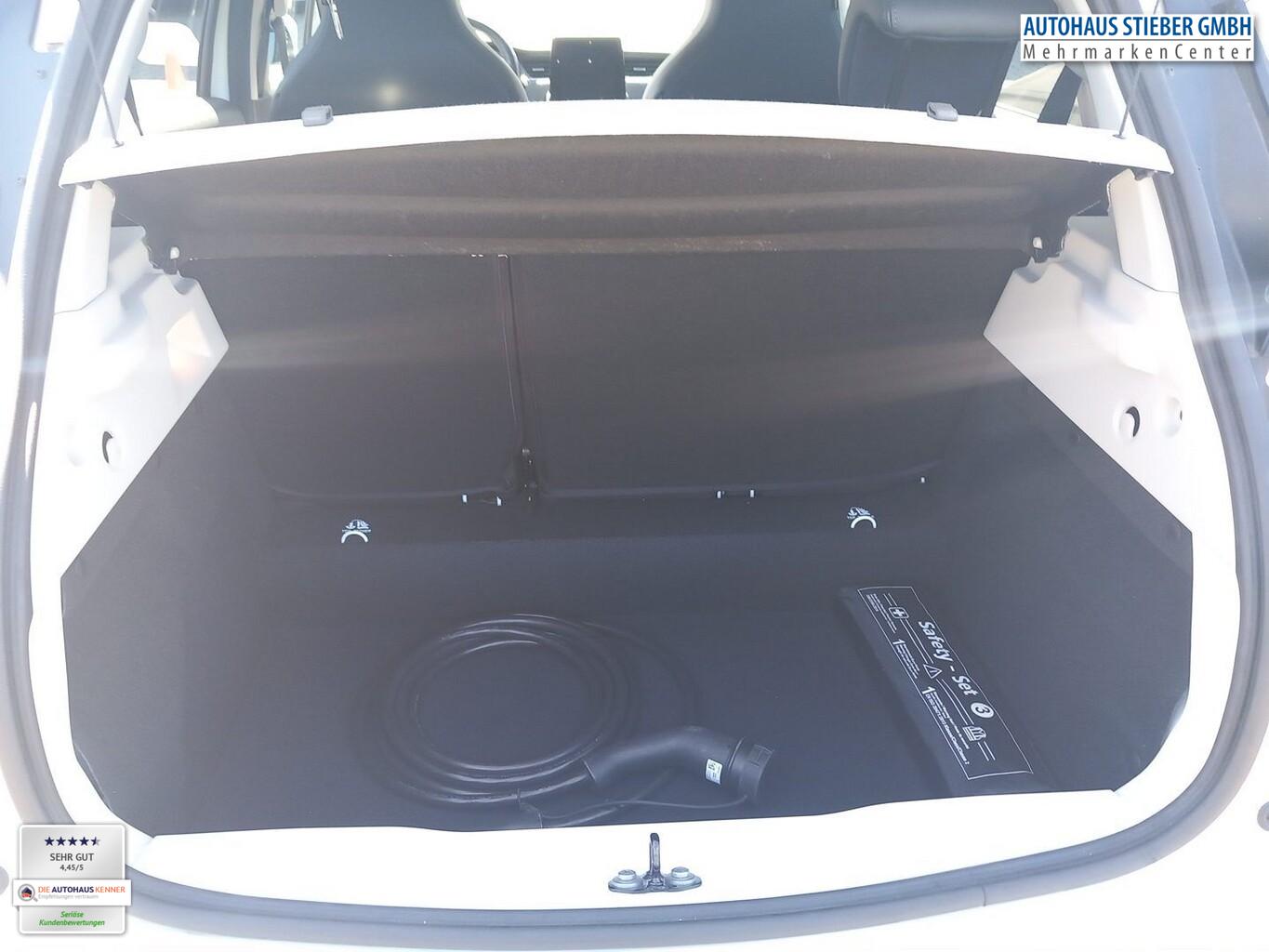 Winter-Paket (Lenkrad heizbar / Sitzheizung vorn / Lenkrad (Leder)), Komfort-Paket (Fensterheber elektr. mit Impulsgeber links vorn), Techno-Paket (Radioempfang digital (DAB+) / Freisprecheinrichtung (Bluetooth) mit Sprachsteuerung / Multimedia-System Easy Link mit Navigationssystem (Touchscreen 7") / USB-Anschluss inkl. AUX-IN-Anschluss (Plug & Music) / Klimaautomatik mit Luftfeuchtigkeits- und Sonnenstandssensor / Fahrassistenz-System: Verkehrszeichenerkennung mit Geschwindigkeits-Warnanzeige / Audio-/Radio-Fernbedienung am Lenkrad), Visio-Paket (Rückfahrkamera / Nebelscheinwerfer LED / Einparkhilfe vorn und hinten), Navigations-Paket (Radioempfang digital (DAB+) / Freisprecheinrichtung (Bluetooth) mit Sprachsteuerung / Multimedia-System Easy Link mit Navigationssystem (Touchscreen 7") / USB-Anschluss inkl. AUX-IN-Anschluss (Plug & Music) / Fahrassistenz-System: Verkehrszeichenerkennung / Audio-/Radio-Fernbedienung am Lenkrad), Geschwindigkeits-Regelanlage (Tempomat) (Geschwindigkeits-Begrenzeranlage), Safety-Paket (Fahrassistenz-System: Aktiver Notbrems-Assistent / Rückfahrkamera / Nebelscheinwerfer LED / Einparkhilfe vorn und hinten), Außenspiegel schwarz, Außenspiegel Wagenfarbe, Elektr. Bremskraftverteilung, Elektromotor 51 kW, Fahrzeug mit HV-Kauf-Batterie, Frontscheibe Akustikglas, Fußmatten, Geräuschsimulator (Außensound), Gurtstraffer, Heckscheibe heizbar, HV-Batterie 52 kWh, Induktionsladeschale für Smartphone, Innenspiegel mit Abblendautomatik, Karosserie: 5-türig, Kombiinstrument digital (10,0 Zoll), Kühlergrill verchromt, Lackierung Arktis-Weiß, Ladekabel mit Typ2/Typ2 (Mode 3), Leistungsvariante R135, Lenkrad (Leder-Optik), Lenksäule (Lenkrad) höhenverstellbar, Lenksäule (Lenkrad) längsverstellbar, Mittelkonsole, Modellpflege, Parkbremse elektrisch mit Auto-Hold-Funktion, Reifen-Reparaturkit, Sicherheitsgurte vorn höhenverstellbar, Sitzbezug / Polsterung: Stoff, Sonnenblenden mit Spiegel (beleuchtet), Steckdose (12V-Anschluß), Türgriffe außen Wagenfarbe, Untersteuerungskontrolle (USC), Warnanlage für Sicherheitsgurte, 2. USB-Anschluss in Mittelkonsole, Anti-Blockier-System (ABS), Bremsassistent, Antischlupfregelung (ASR), Elektron. Stabilitäts-Programm (ESP), LM-Felgen 6,5x16 (Elective), Wegfahrsperre, Getriebe für Elektrofahrzeug, Airbag Beifahrerseite abschaltbar, Airbag Fahrer-/Beifahrerseite, Anti-Submarining-Airbag im Fond, Fensterheber elektrisch hinten, Isofix-Aufnahmen für Kindersitz, Isofix-Aufnahmen für Kindersitz an Beifahrersitz, Seitenairbag vorn, Sitze vorn mit Anti-Submarining-Airbag, Zentralverriegelung / Startanlage Handsfree Entry & Drive, Bordcomputer, Eco Mode (Fahrmodusschalter), Fahrassistenz-System: Berganfahr-Assistent (HSA), Lenkrad (Leder) + Schalt-/Wählhebelgriff Leder, Servolenkung elektrisch, Außenspiegel elektr. anklappbar, Fahrassistenz-System: Fernlichtassistent, Fahrassistenz-System: Totwinkel-Assistent, Heckleuchten LED, Licht- und Regensensor, Scheinwerfer Full-LED mit LED-Signatur (Pure Vision), Tagfahrlicht LED, Fahrassistenz-System: Spurhalteassistent Aktiv, Fahrassistenz-System: Spurwechsel-Warnsystem, Reifendruck-Kontrollsystem