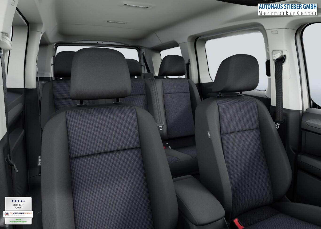 LM-Felgen 6,5x16 (Wien), Klimaanlage Climatronic 2-Zonen, Ausstattungs-Paket: Licht + Sicht (Innenspiegel mit Abblendautomatik / Automatische Fahrlichtschaltung (ALS) mit Leaving Home / Coming-Home-Lichtfunktion / Scheibenwischer mit Licht- und Regensensor), Mittelarmlehne vorn höhen-/längsverstellbar, Ablagefach, Luftausströmer hinten, Stoßfänger Wagenfarbe, Dachreling, Assistenz-Paket Plus (Fahrassistenz-System: Automatische Distanzregelung (ACC) / Außenspiegel elektr. verstell-, heiz- und anklappbar / Fahrassistenz-System: Spurwechselassistent (Side Assist) mit Auspark-Assistent), Lendenwirbelstützen vorn, App-Connect, Sitze vorn höhenverstellbar, Funkschlüssel (4) klappbar, 3. Sitzreihe mit 2 Einzelsitzen, Digital Cockpit (Instrumentenanzeige digital), Einparkhilfe vorn und hinten, Gepäckraumabdeckung, Isofix-Aufnahmen für Kindersitz an Rücksitze, Lenkrad (Leder) mit Multifunktion, Leuchtweitenregulierung, Navigation in Verbindung mit dem Smartphone (über Apple Carplay / Android Auto /...), Reifen 205/60 R16, Rückfahrkamera, Rücksitzlehne geteilt/klappbar, Schlüsselloses Startsystem Keyless Go, Serviceintervall 30.000 km oder 2 Jahre, Außenspiegel schwarz lackiert, Türgriffe außen Wagenfarbe, Abdeckung Schiebetürleiste silber (Abdeckung Schiebetürleiste silber / Außenspiegel schwarz lackiert / Türgriffe außen Wagenfarbe), Ablagefächer in Dachkonsole, Audiosystem Composition (Touchscreen-Farbdisplay 10"), Bluetooth-Schnittstelle für Mobiltelefon, Digital Cockpit Basis, Fahrassistenz-System: Abbiegebremsfunktion und Ausweichunterstützung, Getränkehalter vorn, Handschuhfach mit Klappe, beleuchtet, Heckklappe mit Verglasung, Heckleuchten Standard, Heckscheibe heizbar, Heckscheibenwischer, Karosserie: 5-türig, Kindersicherung im Fahrgastraum elektr. betätigt, Lautsprecher (6), Leseleuchten hinten LED, Mobile Online Dienste Vorbereitung We Connect und We Connect Plus, Motor 2,0 Ltr. - 90 kW TDI, Nichtraucher-Paket, Radioempfang digital (DAB+), Radstand 2970 mm, Schiebetür links, Schiebetür rechts, SCR-System (AdBlue-Technologie), Seitenfenster im Lade-/Fahrgastraum hinten links, fest, Seitenfenster im Lade-/Fahrgastraum hinten rechts, fest, Seitenfenster im Lade-/Fahrgastraum vorn links, fest, Seitenfenster im Lade-/Fahrgastraum vorn rechts, fest, Sicherheitsgurte vorn mit Gurtstraffer, höhenverstellbar, Sitzbezug / Polsterung: Stoff Double Grid, Sonnenblenden mit Spiegel, Steckdose 12V im Koffer-/Laderaum, Türdichtungen mit Staubschutz, Türverkleidung Kunststoff, Armauflage in Stoff, Vorbereitung für Alkohol-Wegfahrsperre (Alcolock), Warnanlage für Sicherheitsgurte vorn und hinten, Multimedia-Schnittstelle USB (Typ C, mit erhöhter Ladeleistung), Anti-Blockier-System (ABS), Antriebsart: Frontantrieb, Elektron. Stabilitäts-Programm (ESP) Bremsassistent, ASR/ABS, EDS, MSR, Wegfahrsperre (elektronisch), Getriebe 7-Gang - Doppelkupplungsgetriebe DSG, Luftzusatzheizung elektrisch, Airbag Fahrer-/Beifahrerseite, Beifahrerairbag abschaltbar, Seitenairbag vorn mit Center-Airbag, Kopf-Airbag-Einheit vorn und hinten, Zentralverriegelung mit Fernbedienung, Frontscheibe Verbundglas getönt, Fahrassistenz-System: Verkehrszeichenerkennung, Frontkamera (Multifunktionskamera Frontscheibe), Notrufsystem, Servolenkung elektronisch gesteuert (Servotronic), Fahrassistenz-System: Ablenkungs- und Müdigkeitserkennung, Fahrassistenz-System: Kreuzungs-Assistent, Fahrassistenz-System: Spurhalteassistent (Lane Assist), Fahrassistenz-System: Umfeldbeobachtungssystem (Front assist) mit City-Notbremsfunktion, Reifenkontroll-Anzeige, Start/Stop-Anlage