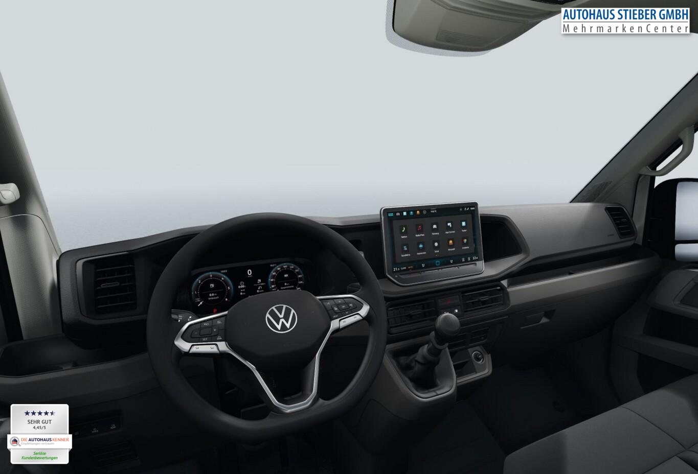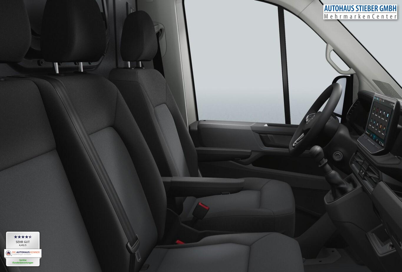 Klimaanlage Climatic (Fahrerhaus), Sitze im Fahrerhaus: Schwingsitz ErgoActive, Fahrerseite (Sitzverstellung 20-fach, Massagefunktion), Sitze im Fahrerhaus: Beifahrerdoppelsitz mit Stau-/Ablagefach, Außenspiegel elektr. verstell-, heiz- und anklappbar, Fahrassistenz-System: Verkehrszeichenerkennung, Rückfahrkamera, Nebelscheinwerfer mit integriertem Abbiegelicht, Fahrassistenz-Paket Basic (Geschwindigkeits-Regelanlage (Tempomat) inkl. Geschwindigkeits-Begrenzeranlage), Reserverad in Fahrbereifung inkl. Bordwerkzeug und Wagenheber (Bordwerkzeug und Wagenheber), Innenleuchten im Fahrerhaus: Trittstufenleuchten, App-Connect Wired und Wireless, Audiosystem Composition inkl. 10,4"-Touchscreen, 4 Lautsprecher, Induktionsladeschale für Smartphone, Kombiinstrument digital (Digital Cockpit), Navigation in Verbindung mit dem Smartphone (über Apple Carplay / Android Auto /...), Parkbremse elektrisch, Reifen 235/65 R16, Schlüsselloses Startsystem Keyless Start, Serviceintervall 50.000 km oder 2 Jahre, Sommerreifen, Vorbereitet für VW Connect und VW Connect Plus, Ablage-Paket 2 (Ablagen: 2 DIN-Schacht vorn unter Dachhimmel / Innenleuchten im Fahrerhaus: Leseleuchte vorn), Fahrassistenz-System: Umfeldbeobachtungssystem (Front Assist) mit City-Notbremsfunktion (Fahrassistenz-System: City-Notbremsfunktion), Außenspiegel konvex, links, Außenspiegel konvex, rechts, Bodenbelag im Fahrerhaus: Gummi, Doppelscheinwerfer, Frontscheibe Verbundglas, Handschuhfach abschließbar, Heckflügeltüren ohne Verglasung, Innenleuchten im Lade-/FG-Raum: LED, Karosserie/Aufbau: Kasten Hochraum Standard, Karosserievariante: Hochdach in Wagenfarbe, LKW-Zulassung, Motor 2,0 Ltr. - 103 kW TDI, Radstand 3640 mm, Schiebetür Lade-/Fahrgastraum rechts, Sitzbezug / Polsterung: Stoff, Stahlfelgen 6,5x16, Steckdosen (12V-Anschluß) im Fahrerhaus (2 Stück), Warnanlage für Sicherheitsgurte (Fahrer-/Beifahrerseite), Zul. Gesamtgewicht 3,50 t, Mobiltelefon Schnittstelle Bluetooth, Multimedia-Schnittstelle 2 x USB (Typ C) vorn, Anti-Blockier-System (ABS), Fahrassistenz-System: Bremsassistent (HBA), Antriebsart: Frontantrieb, Elektron. Stabilitäts-Programm (ESP), Wegfahrsperre (elektronisch), Getriebe 6-Gang, Airbag Fahrer-/Beifahrerseite, Beifahrerairbag abschaltbar, Laderaumtrennwand hoch ohne Fenster, Verzurrösen Laderaum, Zentralverriegelung mit Fernbedienung und Innenbetätigung, Wärmeschutzverglasung, Fahrassistenz-System: Berganfahr-Assistent, Notrufsystem, Lenkrad mit Multifunktion, Servolenkung elektro-mechanisch, Automatische Fahrlichtschaltung, Lichtassistent (Coming Home, Leaving Home), Regensensor, Tagfahrlicht, Fahrassistenz-System: Einparkhilfe vorn und hinten, Fahrassistenz-System: Müdigkeitserkennungs-Sensor, Fahrassistenz-System: Seitenwind-Assistent, Fahrassistenz-System: Spurhalteassistent (Lane Assist), Reifendruck-Kontrollsystem, Rußpartikelfilter, Start/Stop-Anlage Motor