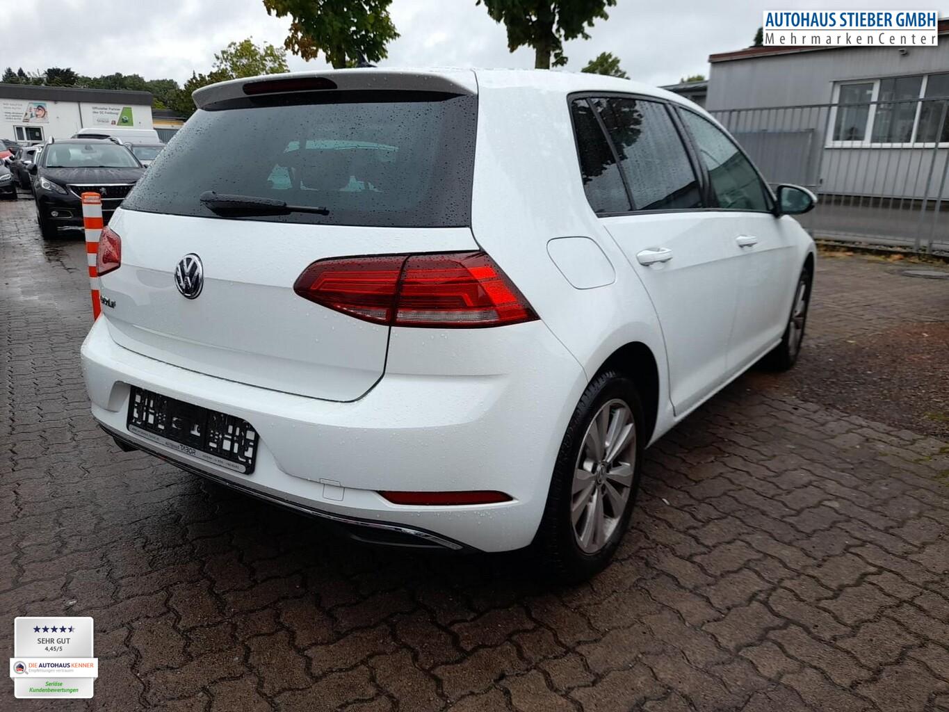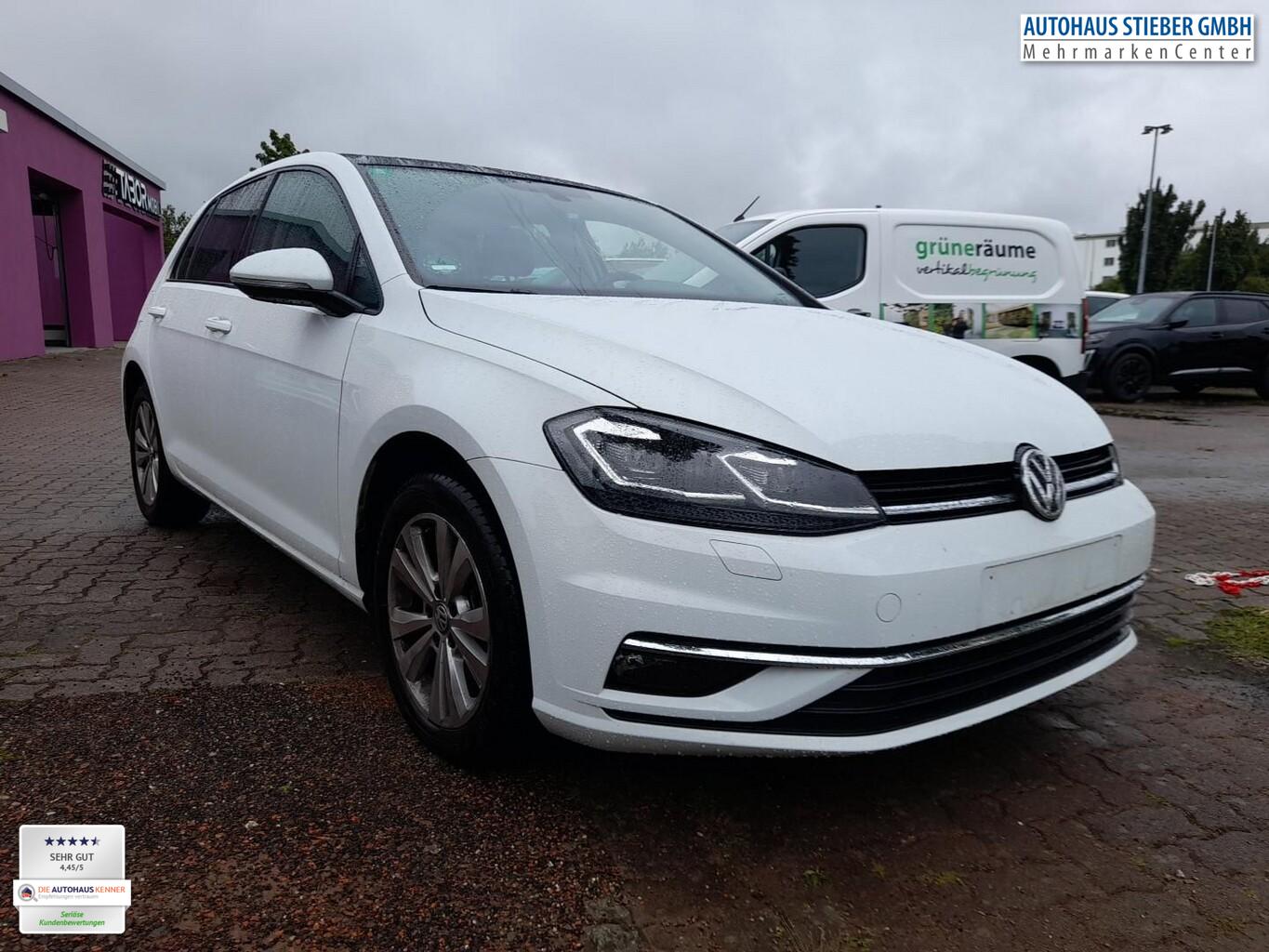 Scheinwerfer LED (Leuchtweitenregelung automatisch / Abbiegelicht), Panorama-Schiebedach elektrisch, Sitz vorn links ErgoActive (inkl. Sitzverstellung 14-Wege, Massagefunktion) (Lendenwirbelstütze Sitz vorn links, elektr. verstellbar / Sitz vorn links mit Massagefunktion / Sitzbezug / Polsterung: Stoff / Mikrovlies ArtVelours / Sitze: Sportsitze vorn / Sitzheizung vorn), Navigationsmodul Discover Media (für Audiosystem) (Volkswagen Media Control), Audiosystem Composition Media (Touchscreen, Radio/CD-Player, MP3, Bluetooth) (Antennen-Diversity / Bluetooth-Schnittstelle für Mobiltelefon / Audiosystem: CD-Player / Multimedia-Schnittstelle USB (iPhone / iPod) mit AUX-IN), Klimaanlage Climatronic 2-Zonen (Innenraumfilter: Staub- und Pollenfilter mit Aktivkohlefilter), Licht- und Sicht-Paket 1 (Innenspiegel mit Abblendautomatik / Automatische Fahrlichtschaltung (ALS) mit Leaving Home / Coming-Home-Lichtfunktion / Fahrassistenz-System: Fernlichtregulierung (Light Assist) / Scheibenwischer mit Regensensor), Fahrassistenz-System: Autom. Distanzregelung (ACC inkl. Stop&Go-Funktion) mit Umfeldbeobachtungssystem (Front assist) (Geschwindigkeits-Begrenzeranlage / Fahrassistenz-System: City-Notbremsfunktion / Fahrassistenz-System: Fußgängererkennung / Fahrassistenz-System: Automatische Distanzregelung (ACC) / Fahrassistenz-System: Umfeldbeobachtungssystem (Front assist) mit City-Notbremsfunktion), Winter-Paket (Anzeige für Waschwasserstand / Scheibenwaschdüsen heizbar / Scheinwerfer-Reinigungsanlage (SRA)), Rückfahrkamera (Rear View), Verglasung hinten abgedunkelt (65 %), Sonderlackierung Pure-White uni, Nebelscheinwerfer mit integriertem Abbiegelicht (Abbiegelicht), LM-Felgen 6,5x16 (Toronto), Lautsprecher (8), Reifen 205/55 R16, Service-/Wartungsintervall 2 Jahre / 30.000 Km, Chrom-Paket (1) (Chromeinfassung Lichtschalter / Chromeinfassung Spiegelverstellung), 3-Punkt-Sicherheitsgurt hinten mitte, Außenspiegel asphärisch, links, Außenspiegel konvex, rechts, Ausstattung Comfortline, Chromleiste Stoßfänger vorn, Doppeltonhorn, Fahrassistenz-System: Anhänger-Stabilisierungs-Programm, Funkschlüssel (2) klappbar, Handschuhfach mit Kühlfunktion, Heckscheibenwischer, Innenausstattung: Dekoreinlagen New Brushed Dark Metal, Karosserie: 5-türig, Kopfstützen hinten (3-fach), Kühlergrill schwarz mit Chromleiste unten, Lendenwirbelstütze Sitz vorn rechts, Lenksäule (Lenkrad) mechan. verstellbar, Höhen-/Längsverstellung, Leseleuchten vorn und hinten, Modellpflege, Motor 1,5 Ltr. - 110 kW 16V TSI ACT, Multifunktionsanzeige Plus, Nebelschlussleuchte, Nichtraucher-Paket, Parkbremse elektrisch, Reifen-Reparaturkit (Tire Mobility Set), Schadstoffarm nach Abgasnorm Euro 6, Schalt-/Wählhebelgriff Leder, Sicherheitsgurte vorn mit Gurtstraffer, höhenverstellbar, Sitz vorn links höhenverstellbar, Sitz vorn rechts höhenverstellbar, Sonnenblenden mit Spiegel (beleuchtet), Steckdose 12V im Koffer-/Laderaum, Stoßfänger lackiert, Türgriffe außen Wagenfarbe, Warnanlage für Sicherheitsgurte vorn, Anti-Blockier-System (ABS), Bremsassistent, Antriebs-Schlupfregelung (ASR), Antriebsart: Frontantrieb, Elektron. Differentialsperre (EDS), Elektron. Differentialsperre (XDS), Elektron. Stabilitäts-Programm (ESP), Stabilisator vorn, Wegfahrsperre (elektronisch), Getriebe 7-Gang - Doppelkupplungsgetriebe DSG, Airbag Beifahrerseite abschaltbar, Airbag Fahrer-/Beifahrerseite, Durchladeeinrichtung (Mittelarmlehne hinten), Fensterheber elektrisch, Isofix-Aufnahmen für Kindersitz an Rücksitz, Knieairbag Fahrerseite, Kopf-Airbag-System vorn und hinten inkl. Seitenairbag vorn, Mittelarmlehne vorn, Rücksitzlehne geteilt, Zentralverriegelung mit Fernbedienung, Frontscheibe Verbundglas getönt, Auto-Hold-Funktion, Lenkrad (Leder) mit Multifunktion und Schaltfunktion, Servolenkung elektro-mechanisch und geschwindigkeitsabhängig, Außenspiegel elektr. verstell- und heizbar, Außenspiegel mit autom. Absenkfunktion, rechts, Blinkleuchte in Außenspiegel integriert, Heckleuchten LED, Tagfahrlicht LED, Fahrassistenz-System: Müdigkeitserkennung, Reifenkontroll-Anzeige, Start/Stop-Anlage