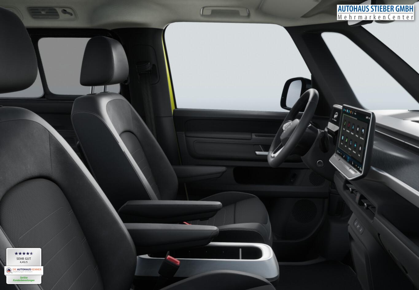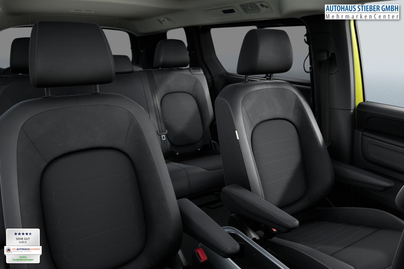 Ausstattungs-Paket: Easy Open & Close Plus (Fenster im Lade-/FG-Raum: - schiebbar, vorn links / Fenster im Lade-/FG-Raum: - schiebbar, vorn rechts / Schließ-/Startsystem Keyless Advanced mit Safesicherung / Umfeldleuchte in Heckklappe / Heckklappe elektr. betätigt Easy Open (öffnen + schliessen, sensorgesteuert) / Schiebetür Lade-/Fahrgastraum links elektr. betätigt Easy Open (sensorgesteuert) / Schiebetür Lade-/Fahrgastraum rechts elektr. betätigt Easy Open (sensorgesteuert)), Interieur-Paket Style Plus (Lenkrad schwarz) (Ambiente-Beleuchtung (30 Farben) / Sitzbezug / Polsterung: Stoff Seaqual / Sitze im Fahrerhaus: Fahrer- und Beifahrersitz Komfort / Sitze im Fahrerhaus: Fahrer- und Beifahrersitz mit Armlehnen beidseitig / Sitze vorn mit Massagefunktion / Sitze im Fahrerhaus: Fahrer- und Beifahrersitz elektr. verstellbar mit Memory, Einstiegshilfe links / Sitze im Fahrerhaus: Fahrer- und Beifahrersitz heizbar / Lenkrad heizbar (Leder) mit Multifunktion), Ausstattungs-Paket: Komfort-Paket Plus (Außenspiegel schwarz lackiert und Türgriffe außen in Wagenfarbe / Gepäckraum-Abtrennung / Trennnetz / Gepäckraumabdeckung / Rollo / Innenspiegel mit Abblendautomatik / Mittelkonsole vorn variabel (ID.Buzz Box) / Multiflex-Board / Scheibenwaschdüsen beheizt / Multimedia-Schnittstelle 2 x USB (Typ C) vorn, USB-Ladeanschluß (Typ C) 1 x vorn, hinten / Klimaanlage Climatronic 3-Zonen inkl. Fondbedienung / Sitze im Fahrerhaus: Fahrer- und Beifahrersitz heizbar / Lenkrad heizbar (Leder) mit Multifunktion / Regensensor), LM-Felgen vorn/hinten: 8x19 / 9x19 (Tilburg, schwarz glanzgedreht), Fahrassistenz-Paket Plus inkl. Travel Assist und Umgebungsansicht inkl. Rückfahrkamera (Schließ-/Startsystem Keyless Advanced mit Safesicherung / Türgriffschalen außen beleuchtet / Rückfahrkamera mit 360° Umgebungsansicht (Area View) / Lenkrad heizbar (Leder) mit Multifunktion / Fahrassistenz-System: Memoryfunktion für Park Assist / Fahrassistenz-System: Parklenkassistent (Park Assist) inkl. Einparkhilfe vorn und hinten / Fahrassistenz-Paket: Travel Assist, Emergency Assist und Lane Assist / Diebstahl-Warnanlage + Innenraumüberwachung / Abschleppschutz + Back-up-Horn), Ausstattungs-Paket: Design (Leuchtweitenregelung automatisch und Kurvenlicht dynamisch / Lichtleiste zwischen Scheinwerfer / Pedale Edelstahl / Fahrassistenz-System: Dynamische Fernlichtregulierung (Dynamic Light Assist) / Heckleuchten LED, Blinkleuchten dynamisch / Matrix-LED-Scheinwerfer (IQ.Light)), Sitz-Paket: 7-Sitzer (Sitzausstattung: 7-Sitzer / Sitze im Lade-/FG-Raum: 1.Reihe, 3er-Sitzbank, geteilt/klappbar + 2.Reihe, 2 Einzelsitze, herausnehmbar / Zul. Gesamtgewicht 3,34 t / Klimaanlage 2-Zonen mit 2 Zuheizer), Heizungs-/Klimaanlage: Wärmepumpe, Anhängerkupplung klappbar (elektr. Entriegelung), Ladekabel mit Schukostecker (10 A, Mode 2), Ladekabel mit Typ 2-Stecker (32 A, Mode 3), Fahrassistenz-System: Parklenkassistent (Park Assist Pro) inkl. Einparkhilfe in Verbindung mit Onlinedienste, Diebstahl-Warnanlage + Innenraumüberwachung / Abschleppschutz, Elektron. Stabilitäts-Programm (ESP), Garantieverlängerung: 3 Jahre oder 100.000 km, Isofix-Aufnahmen für Kindersitz am Beifahrersitz, Navigation in Verbindung mit dem Smartphone (über Apple Carplay / Android Auto /...), Radschrauben mit Diebstahlsicherung, Scheibenwischer mit Intervallschaltung, Sommerreifen hinten 255/50 R19, Sommerreifen vorn 235/55 R19, Akustischer Fußgängerschutz, Außensound (e-sound), Audiosystem Ready 2 Discover (Touchscreen-Farbdisplay 12,9 Zoll), Audiosystem: Vorbereitung für spätere Freischaltung Navigationsfunktion Discover Pro, Außenspiegel konvex, links und rechts, Bidirektionales Laden (DC), Bodenbelag: Teppich verstärkt, DC / DC Wandler 3 kW, Elektromotor 210 kW (cont. 89 kW), Fahrassistenz-System: Ausweich-Assistent und Abbiege-Assistent, Funkschlüssel (2), Fußraumbeleuchtung vorn und hinten, Heckklappe mit Verglasung, Heckscheibenwischer mit Intervallschaltung, HV-Batterie 86 kWh netto, Innenausstattung: Bedienelemente, Lenkrad und Einfassung Instrumente schwarz, Innenleuchten im Lade-/FG-Raum: LED (Gepäckraum), Insassen-Schutzsystem proaktiv, Intelligent Speed Assist inkl. Geschwindigkeitsbegrenzer, Karosserie/Aufbau: Bus, Lautsprecher (9), Linkslenker, Mobile Online Dienste App-Connect inkl. App-Connect Wireless (Apple CarPlay, Android Auto), Nichtraucher-Paket, Radioempfang digital (DAB+), Radstand 3239 mm, Radstand lang, Schnellladevorrichtung (CCS-Ladedose), Sonnenblenden mit Spiegel (beleuchtet), Steckdose (12V-Anschluß) im Laderaum, Stoßfänger in Wagenfarbe, Umfeldbeleuchtung seitlich mit Projektionsfunktion, Vorbereitung für Alkohol-Wegfahrsperre (Alcolock), Vorbereitung Onlinedienste We Connect (Plus) oder VW Connect (Plus) und Online-Update-Fähigkeit, Warnanlage für Sicherheitsgurte vorn und hinten, Mobiltelefon Schnittstelle Bluetooth, Mobiltelefon Schnittstelle mit kabelloser Ladefunktion, Anti-Blockier-System (ABS), Antriebsart: Heckantrieb, Getriebe für Elektrofahrzeug, Airbag Fahrer-/Beifahrerseite, Beifahrerairbag abschaltbar, Isofix-Aufnahmen für Kindersitz an Rücksitz, Seitenairbag, Kopfairbag und Center-Airbag vorn, Wärmeschutzverglasung seitlich / hinten, Fahrassistenz-System: Autom. Distanzregelung (ACC inkl. Stop&Go-Funktion), Fahrassistenz-System: Verkehrszeichenerkennung, Multifunktionskamera / Frontkamera, Notrufsystem, Servolenkung elektro-mechanisch, geschwindigkeitsabhängig, Außenspiegel elektr. verstell-, heiz- und anklappbar mit Spiegelabsenkung, Fahrassistenz-System: Ablenkungs- und Müdigkeitserkennung, Fahrassistenz-System: Notbrems-Assistent (Front Assist) inkl. Fußgänger- und Fahrraderkennung, Fahrassistenz-System: Spurhalteassistent (Lane Assist), Fahrassistenz-System: Spurwechselassistent (Side Assist) mit Auspark-Assistent und Ausstiegswarnung, Reifenkontroll-Anzeige