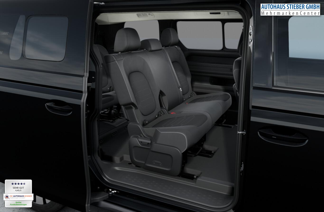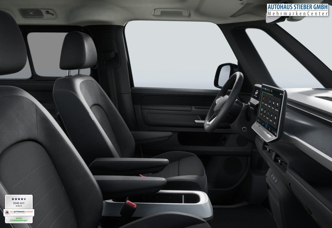 Ausstattungs-Paket: Easy Open & Close Plus (Fenster im Lade-/FG-Raum: - schiebbar, vorn links / Fenster im Lade-/FG-Raum: - schiebbar, vorn rechts / Schließ-/Startsystem Keyless Advanced mit Safesicherung / Umfeldleuchte in Heckklappe / Heckklappe elektr. betätigt Easy Open (öffnen + schliessen, sensorgesteuert) / Schiebetür Lade-/Fahrgastraum links elektr. betätigt Easy Open (sensorgesteuert) / Schiebetür Lade-/Fahrgastraum rechts elektr. betätigt Easy Open (sensorgesteuert)), Interieur-Paket Style Plus (Lenkrad schwarz) (Ambiente-Beleuchtung (30 Farben) / Sitzbezug / Polsterung: Stoff Seaqual / Sitze im Fahrerhaus: Fahrer- und Beifahrersitz Komfort / Sitze im Fahrerhaus: Fahrer- und Beifahrersitz mit Armlehnen beidseitig / Sitze vorn mit Massagefunktion / Sitze im Fahrerhaus: Fahrer- und Beifahrersitz elektr. verstellbar mit Memory, Einstiegshilfe links / Sitze im Fahrerhaus: Fahrer- und Beifahrersitz heizbar / Lenkrad heizbar (Leder) mit Multifunktion), Ausstattungs-Paket: Komfort-Paket Plus (Außenspiegel schwarz lackiert und Türgriffe außen in Wagenfarbe / Gepäckraum-Abtrennung / Trennnetz / Gepäckraumabdeckung / Rollo / Innenspiegel mit Abblendautomatik / Mittelkonsole vorn variabel (ID.Buzz Box) / Multiflex-Board / Scheibenwaschdüsen beheizt / Multimedia-Schnittstelle 2 x USB (Typ C) vorn, USB-Ladeanschluß (Typ C) 1 x vorn, hinten / Klimaanlage Climatronic 3-Zonen inkl. Fondbedienung / Sitze im Fahrerhaus: Fahrer- und Beifahrersitz heizbar / Lenkrad heizbar (Leder) mit Multifunktion / Regensensor), LM-Felgen vorn/hinten: 8x19 / 9x19 (Tilburg, schwarz glanzgedreht), Fahrassistenz-Paket Plus inkl. Travel Assist und Umgebungsansicht inkl. Rückfahrkamera (Schließ-/Startsystem Keyless Advanced mit Safesicherung / Türgriffschalen außen beleuchtet / Rückfahrkamera mit 360° Umgebungsansicht (Area View) / Lenkrad heizbar (Leder) mit Multifunktion / Fahrassistenz-System: Memoryfunktion für Park Assist / Fahrassistenz-System: Parklenkassistent (Park Assist) inkl. Einparkhilfe vorn und hinten / Fahrassistenz-Paket: Travel Assist, Emergency Assist und Lane Assist / Diebstahl-Warnanlage + Innenraumüberwachung / Abschleppschutz + Back-up-Horn), Ausstattungs-Paket: Design (Leuchtweitenregelung automatisch und Kurvenlicht dynamisch / Lichtleiste zwischen Scheinwerfer / Pedale Edelstahl / Fahrassistenz-System: Dynamische Fernlichtregulierung (Dynamic Light Assist) / Heckleuchten LED, Blinkleuchten dynamisch / Matrix-LED-Scheinwerfer (IQ.Light)), Sitz-Paket: 7-Sitzer (Sitzausstattung: 7-Sitzer / Sitze im Lade-/FG-Raum: 1.Reihe, 3er-Sitzbank, geteilt/klappbar + 2.Reihe, 2 Einzelsitze, herausnehmbar / Zul. Gesamtgewicht 3,34 t / Klimaanlage 2-Zonen mit 2 Zuheizer), Ladekabel mit Schukostecker (10 A, Mode 2), Ladekabel mit Typ 2-Stecker (32 A, Mode 3), Fahrassistenz-System: Parklenkassistent (Park Assist Pro) inkl. Einparkhilfe in Verbindung mit Onlinedienste, Diebstahl-Warnanlage + Innenraumüberwachung / Abschleppschutz, Elektron. Stabilitäts-Programm (ESP), Garantieverlängerung: 3 Jahre oder 100.000 km, Isofix-Aufnahmen für Kindersitz am Beifahrersitz, Navigation in Verbindung mit dem Smartphone (über Apple Carplay / Android Auto /...), Radschrauben mit Diebstahlsicherung, Scheibenwischer mit Intervallschaltung, Sommerreifen hinten 255/50 R19, Sommerreifen vorn 235/55 R19, Akustischer Fußgängerschutz, Außensound (e-sound), Audiosystem Ready 2 Discover (Touchscreen-Farbdisplay 12,9 Zoll), Audiosystem: Vorbereitung für spätere Freischaltung Navigationsfunktion Discover Pro, Außenspiegel konvex, links und rechts, Bidirektionales Laden (DC), Bodenbelag: Teppich verstärkt, DC / DC Wandler 3 kW, Elektromotor 210 kW (cont. 89 kW), Fahrassistenz-System: Ausweich-Assistent und Abbiege-Assistent, Funkschlüssel (2), Fußraumbeleuchtung vorn und hinten, Heckklappe mit Verglasung, Heckscheibenwischer mit Intervallschaltung, HV-Batterie 86 kWh netto, Innenausstattung: Bedienelemente, Lenkrad und Einfassung Instrumente schwarz, Innenleuchten im Lade-/FG-Raum: LED (Gepäckraum), Insassen-Schutzsystem proaktiv, Intelligent Speed Assist inkl. Geschwindigkeitsbegrenzer, Karosserie/Aufbau: Bus, Lautsprecher (9), Linkslenker, Mobile Online Dienste App-Connect inkl. App-Connect Wireless (Apple CarPlay, Android Auto), Nichtraucher-Paket, Radioempfang digital (DAB+), Radstand 3239 mm, Radstand lang, Schnellladevorrichtung (CCS-Ladedose), Sonnenblenden mit Spiegel (beleuchtet), Steckdose (12V-Anschluß) im Laderaum, Stoßfänger in Wagenfarbe, Umfeldbeleuchtung seitlich mit Projektionsfunktion, Vorbereitung für Alkohol-Wegfahrsperre (Alcolock), Vorbereitung Onlinedienste We Connect (Plus) oder VW Connect (Plus) und Online-Update-Fähigkeit, Warnanlage für Sicherheitsgurte vorn und hinten, Mobiltelefon Schnittstelle Bluetooth, Mobiltelefon Schnittstelle mit kabelloser Ladefunktion, Anti-Blockier-System (ABS), Antriebsart: Heckantrieb, Getriebe für Elektrofahrzeug, Airbag Fahrer-/Beifahrerseite, Beifahrerairbag abschaltbar, Isofix-Aufnahmen für Kindersitz an Rücksitz, Seitenairbag, Kopfairbag und Center-Airbag vorn, Wärmeschutzverglasung seitlich / hinten, Fahrassistenz-System: Autom. Distanzregelung (ACC inkl. Stop&Go-Funktion), Fahrassistenz-System: Verkehrszeichenerkennung, Multifunktionskamera / Frontkamera, Notrufsystem, Servolenkung elektro-mechanisch, geschwindigkeitsabhängig, Außenspiegel elektr. verstell-, heiz- und anklappbar mit Spiegelabsenkung, Fahrassistenz-System: Ablenkungs- und Müdigkeitserkennung, Fahrassistenz-System: Notbrems-Assistent (Front Assist) inkl. Fußgänger- und Fahrraderkennung, Fahrassistenz-System: Spurhalteassistent (Lane Assist), Fahrassistenz-System: Spurwechselassistent (Side Assist) mit Auspark-Assistent und Ausstiegswarnung, Reifenkontroll-Anzeige