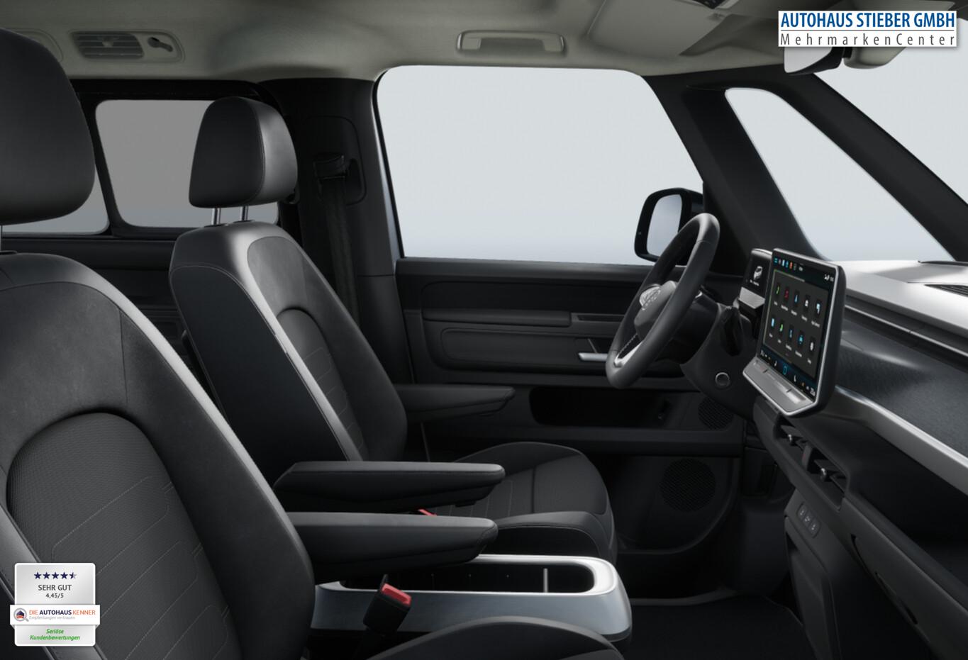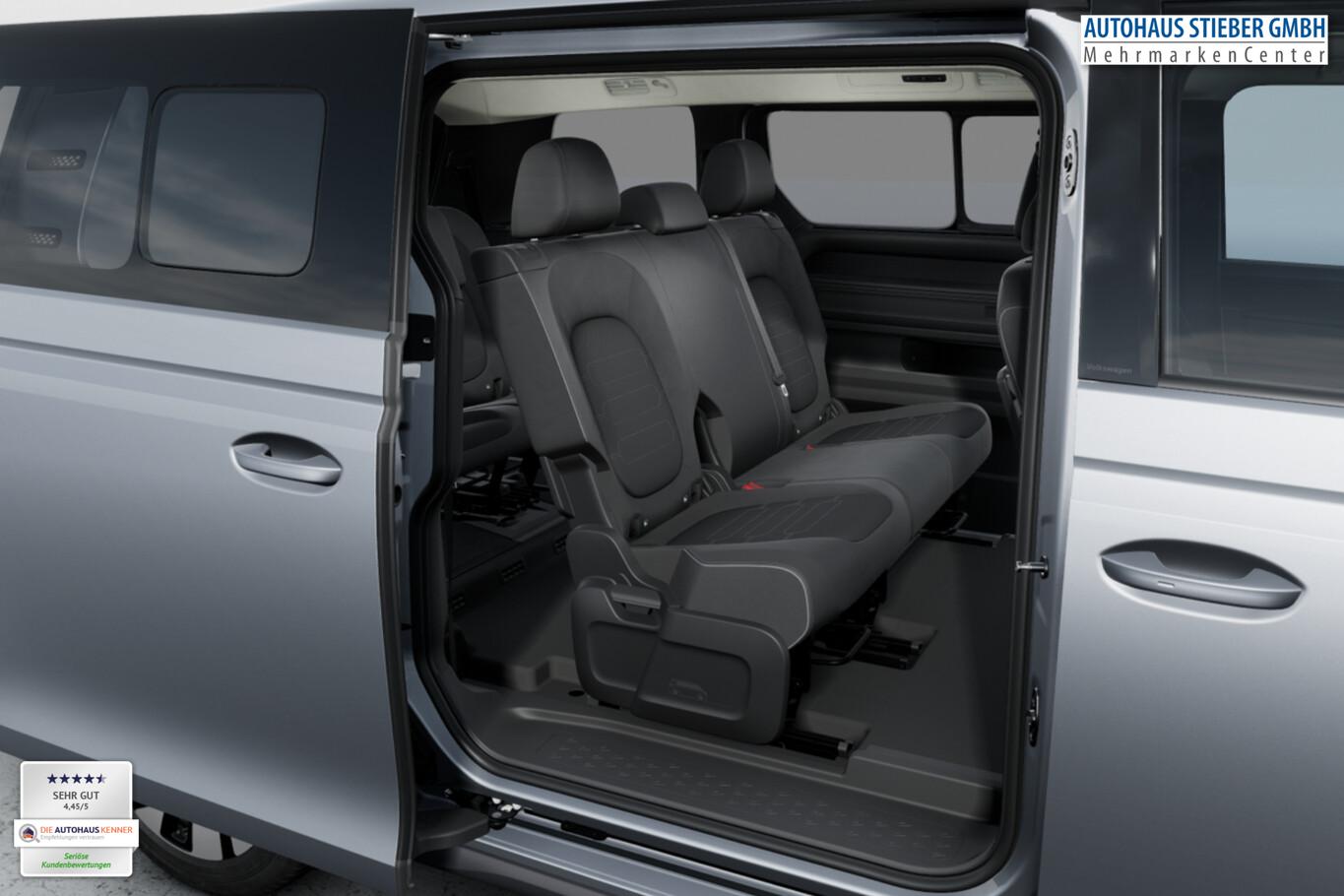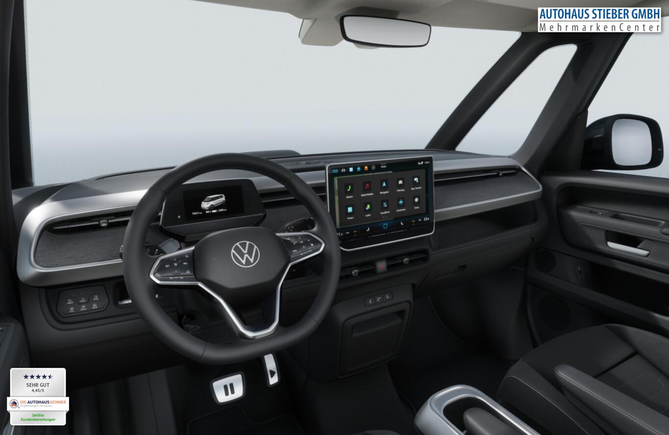 Ausstattungs-Paket: Easy Open & Close Plus (Fenster im Lade-/FG-Raum: - schiebbar, vorn links / Fenster im Lade-/FG-Raum: - schiebbar, vorn rechts / Schließ-/Startsystem Keyless Advanced mit Safesicherung / Umfeldleuchte in Heckklappe / Heckklappe elektr. betätigt Easy Open (öffnen + schliessen, sensorgesteuert) / Schiebetür Lade-/Fahrgastraum links elektr. betätigt Easy Open (sensorgesteuert) / Schiebetür Lade-/Fahrgastraum rechts elektr. betätigt Easy Open (sensorgesteuert)), Interieur-Paket Style Plus (Lenkrad schwarz) (Ambiente-Beleuchtung (30 Farben) / Sitzbezug / Polsterung: Stoff Seaqual / Sitze im Fahrerhaus: Fahrer- und Beifahrersitz Komfort / Sitze im Fahrerhaus: Fahrer- und Beifahrersitz mit Armlehnen beidseitig / Sitze vorn mit Massagefunktion / Sitze im Fahrerhaus: Fahrer- und Beifahrersitz elektr. verstellbar mit Memory, Einstiegshilfe links / Sitze im Fahrerhaus: Fahrer- und Beifahrersitz heizbar / Lenkrad heizbar (Leder) mit Multifunktion), Ausstattungs-Paket: Komfort-Paket Plus (Außenspiegel schwarz lackiert und Türgriffe außen in Wagenfarbe / Gepäckraum-Abtrennung / Trennnetz / Gepäckraumabdeckung / Rollo / Innenspiegel mit Abblendautomatik / Mittelkonsole vorn variabel (ID.Buzz Box) / Multiflex-Board / Scheibenwaschdüsen beheizt / Multimedia-Schnittstelle 2 x USB (Typ C) vorn, USB-Ladeanschluß (Typ C) 1 x vorn, hinten / Klimaanlage Climatronic 3-Zonen inkl. Fondbedienung / Sitze im Fahrerhaus: Fahrer- und Beifahrersitz heizbar / Lenkrad heizbar (Leder) mit Multifunktion / Regensensor), LM-Felgen vorn/hinten: 8x19 / 9x19 (Tilburg, schwarz glanzgedreht), Fahrassistenz-Paket Plus inkl. Travel Assist und Umgebungsansicht inkl. Rückfahrkamera (Schließ-/Startsystem Keyless Advanced mit Safesicherung / Türgriffschalen außen beleuchtet / Rückfahrkamera mit 360° Umgebungsansicht (Area View) / Lenkrad heizbar (Leder) mit Multifunktion / Fahrassistenz-System: Memoryfunktion für Park Assist / Fahrassistenz-System: Parklenkassistent (Park Assist) inkl. Einparkhilfe vorn und hinten / Fahrassistenz-Paket: Travel Assist, Emergency Assist und Lane Assist / Diebstahl-Warnanlage + Innenraumüberwachung / Abschleppschutz + Back-up-Horn), Ausstattungs-Paket: Design (Leuchtweitenregelung automatisch und Kurvenlicht dynamisch / Lichtleiste zwischen Scheinwerfer / Pedale Edelstahl / Fahrassistenz-System: Dynamische Fernlichtregulierung (Dynamic Light Assist) / Heckleuchten LED, Blinkleuchten dynamisch / Matrix-LED-Scheinwerfer (IQ.Light)), Sitz-Paket: 7-Sitzer (Sitzausstattung: 7-Sitzer / Sitze im Lade-/FG-Raum: 1.Reihe, 3er-Sitzbank, geteilt/klappbar + 2.Reihe, 2 Einzelsitze, herausnehmbar / Zul. Gesamtgewicht 3,34 t / Klimaanlage 2-Zonen mit 2 Zuheizer), Heizungs-/Klimaanlage: Wärmepumpe, Ladekabel mit Schukostecker (10 A, Mode 2), Ladekabel mit Typ 2-Stecker (32 A, Mode 3), Fahrassistenz-System: Parklenkassistent (Park Assist Pro) inkl. Einparkhilfe in Verbindung mit Onlinedienste, Diebstahl-Warnanlage + Innenraumüberwachung / Abschleppschutz, Elektron. Stabilitäts-Programm (ESP), Garantieverlängerung: 3 Jahre oder 100.000 km, Isofix-Aufnahmen für Kindersitz am Beifahrersitz, Navigation in Verbindung mit dem Smartphone (über Apple Carplay / Android Auto /...), Radschrauben mit Diebstahlsicherung, Scheibenwischer mit Intervallschaltung, Sommerreifen hinten 255/50 R19, Sommerreifen vorn 235/55 R19, Akustischer Fußgängerschutz, Außensound (e-sound), Audiosystem Ready 2 Discover (Touchscreen-Farbdisplay 12,9 Zoll), Audiosystem: Vorbereitung für spätere Freischaltung Navigationsfunktion Discover Pro, Außenspiegel konvex, links und rechts, Bidirektionales Laden (DC), Bodenbelag: Teppich verstärkt, DC / DC Wandler 3 kW, Elektromotor 210 kW (cont. 89 kW), Fahrassistenz-System: Ausweich-Assistent und Abbiege-Assistent, Funkschlüssel (2), Fußraumbeleuchtung vorn und hinten, Heckklappe mit Verglasung, Heckscheibenwischer mit Intervallschaltung, HV-Batterie 86 kWh netto, Innenausstattung: Bedienelemente, Lenkrad und Einfassung Instrumente schwarz, Innenleuchten im Lade-/FG-Raum: LED (Gepäckraum), Insassen-Schutzsystem proaktiv, Intelligent Speed Assist inkl. Geschwindigkeitsbegrenzer, Karosserie/Aufbau: Bus, Lautsprecher (9), Linkslenker, Mobile Online Dienste App-Connect inkl. App-Connect Wireless (Apple CarPlay, Android Auto), Nichtraucher-Paket, Radioempfang digital (DAB+), Radstand 3239 mm, Radstand lang, Schnellladevorrichtung (CCS-Ladedose), Sonnenblenden mit Spiegel (beleuchtet), Steckdose (12V-Anschluß) im Laderaum, Stoßfänger in Wagenfarbe, Umfeldbeleuchtung seitlich mit Projektionsfunktion, Vorbereitung für Alkohol-Wegfahrsperre (Alcolock), Vorbereitung Onlinedienste We Connect (Plus) oder VW Connect (Plus) und Online-Update-Fähigkeit, Warnanlage für Sicherheitsgurte vorn und hinten, Mobiltelefon Schnittstelle Bluetooth, Mobiltelefon Schnittstelle mit kabelloser Ladefunktion, Anti-Blockier-System (ABS), Antriebsart: Heckantrieb, Getriebe für Elektrofahrzeug, Airbag Fahrer-/Beifahrerseite, Beifahrerairbag abschaltbar, Isofix-Aufnahmen für Kindersitz an Rücksitz, Seitenairbag, Kopfairbag und Center-Airbag vorn, Wärmeschutzverglasung seitlich / hinten, Fahrassistenz-System: Autom. Distanzregelung (ACC inkl. Stop&Go-Funktion), Fahrassistenz-System: Verkehrszeichenerkennung, Multifunktionskamera / Frontkamera, Notrufsystem, Servolenkung elektro-mechanisch, geschwindigkeitsabhängig, Außenspiegel elektr. verstell-, heiz- und anklappbar mit Spiegelabsenkung, Fahrassistenz-System: Ablenkungs- und Müdigkeitserkennung, Fahrassistenz-System: Notbrems-Assistent (Front Assist) inkl. Fußgänger- und Fahrraderkennung, Fahrassistenz-System: Spurhalteassistent (Lane Assist), Fahrassistenz-System: Spurwechselassistent (Side Assist) mit Auspark-Assistent und Ausstiegswarnung, Reifenkontroll-Anzeige