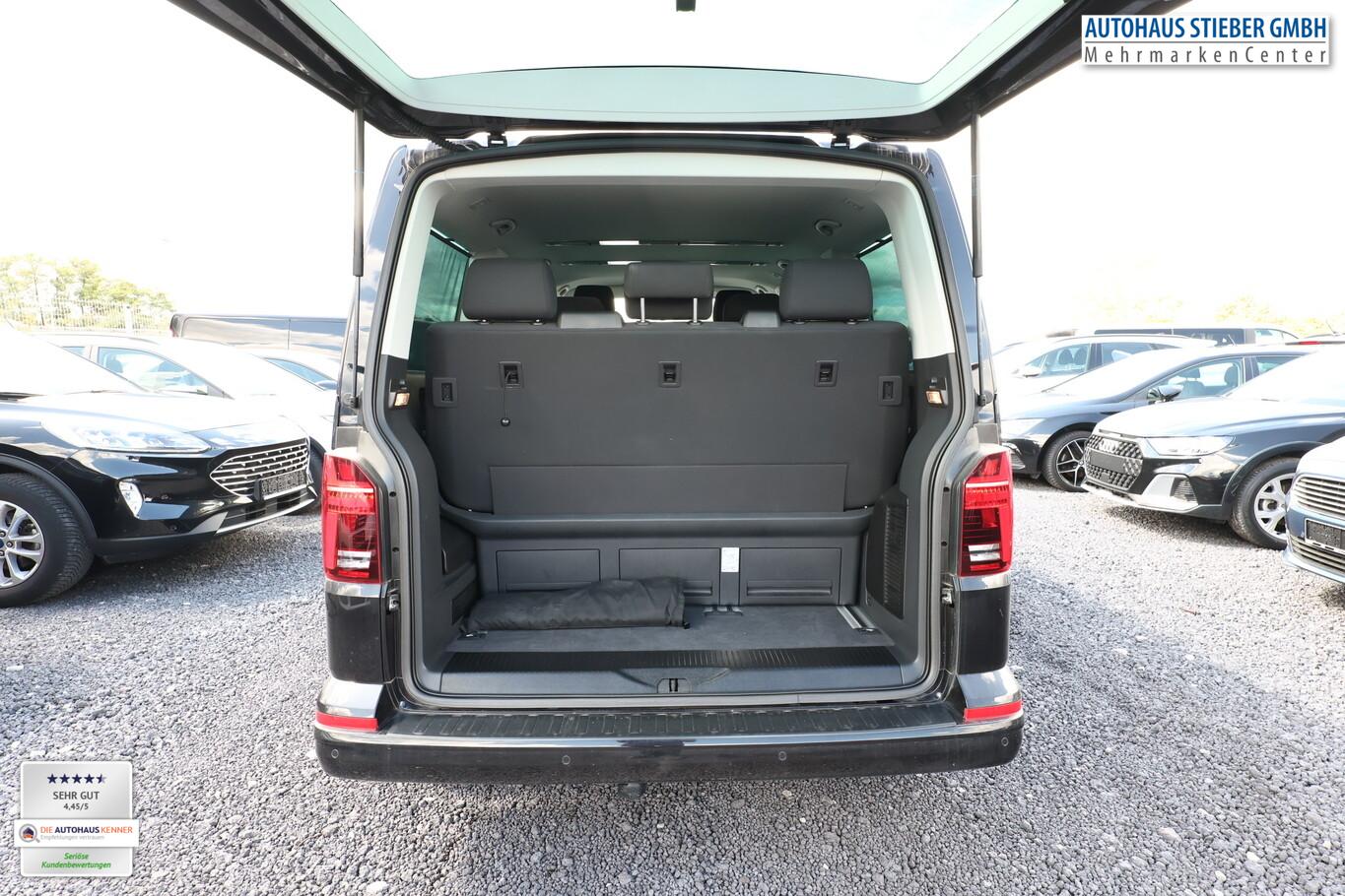 Fahrassistenz-Paket Plus (Fahrassistenz-System: Fahrzeug-Stop-Funktion für Autom. Distanzregelung / Geschwindigkeits-Begrenzeranlage / Fahrassistenz-System: City-Notbremsfunktion / Fahrassistenz-System: Autom. Distanzregelung (ACC) und Umfeldbeobachtungssystem (Front Assist, bis 210 km/h) / Fahrassistenz-System: Verkehrszeichenerkennung / Geschwindigkeits-Regelanlage (Tempomat) inkl. Geschwindigkeits-Begrenzeranlage / Außenspiegel elektr. verstell-, heiz- und anklappbar / Fahrassistenz-System: Fernlichtregulierung (Light Assist) / Fahrassistenz-System: Auspark-Assistent / Fahrassistenz-System: Spurhalteassistent (Lane Assist) / Fahrassistenz-System: Spurwechselassistent (Side Assist / Blind Spot Sensor) / Fahrassistenz-System: Spurwechselassistent (Side Assist) inkl. Spurhalteassistent (Lane Assist) / Fahrassistenz-System: Umfeldbeobachtungssystem (Front Assist) mit City-Notbremsfunktion), Zusatzheizung (Warmwasser) mit Standheizfunktion und Fernbedienung, Scheinwerfer und Heckleuchten LED (Leuchtweitenregelung automatisch / Heckleuchten LED, rot / Tagfahrlicht LED), Klimaautomatik Climatronic (Fahrerhaus + Lade-/Fahrgastraum) (Verdampfer zusätzlich), Lackierung: Perleffekt-Lackierung, Audio-Navigationssystem Discover Media Streaming & Internet (Touchscreen, USB) (Sprachsteuerungs-System), Anhängerkupplung (Kugelkopf abnehmbar) (Anhänger-Stabilisierungs-Programm), Fahrassistenz-System: Parklenkassistent (Park Assist) inkl. Einparkhilfe mit aktivem Flankenschutz (Fahrassistenz-System: Einparkhilfe vorn und hinten), Zuziehhilfe Schiebetür links (Schiebetür Lade-/Fahrgastraum links), Dämmglas-Paket (Fenster im Fahrerhaus: Seitenscheiben Doppelverglasung / Fenster im Lade-/FG-Raum: Doppelverglasung, abgedunkelt / Frontscheibe Dämmglas / Heckscheibe Doppelverglasung / Dämmglas mit Wischanlage), Multifunktionstisch, Sitze im Fahrerhaus: Fahrer- und Beifahrersitz heizbar, Digital Cockpit (Instrumentenanzeige Digital) (Fahrassistenz-System: Müdigkeitserkennungs-Sensor), Mobiltelefon Schnittstelle Comfort mit kabelloser Ladefunktion, Nebelscheinwerfer mit integriertem Abbiegelicht, Dynamik-Fahrwerk (Fahrwerk tiefergelegt), Rückfahrkamera, Gepäckraum-Abtrennung / Trennnetz, Zuziehhilfe Schiebetür rechts, Scheibenwaschdüsen beheizt und Anzeige für Waschwasserstand (Anzeige für Waschwasserstand / Scheibenwaschdüsen beheizt), 3er-Sitzbank mit Staufach, verschiebbar plus Liegefunktion, Lautsprecher (6), Lichtassistent (Coming-/Leaving Home), LM-Felgen 7J x 17 Zoll, Reifen 215/60 R17, Service-/Wartungsintervall 2 Jahre / 30.000km, Smartphone Schnittstelle (Wired & Wireless), Sitze im Fahrerhaus: Fahrer- und Beifahrersitz höhenverstellbar (Sitze im Fahrerhaus: Beifahrersitz höhenverstellbar / Sitze im Fahrerhaus: Fahrersitz höhenverstellbar), Sitze im Fahrerhaus: Lendenwirbelstützen Fahrer- und Beifahrersitz (Sitze im Fahrerhaus: Lendenwirbelstütze Beifahrersitz / Sitze im Fahrerhaus: Lendenwirbelstütze Fahrersitz), Elektron. Stabilitäts-Programm (ESP) mit Bremsassistent, ASR/ABS, EDS und Berganfahrhilfe (Fahrassistenz-System: Berganfahr-Assistent), Sitze im Fahrerhaus: Fahrer- und Beifahrersitz mit Armlehnen vorn (Sitze im Fahrerhaus: Armlehnen, Beifahrersitz / Sitze im Fahrerhaus: Armlehnen, Fahrersitz), Armaturentafel Komfort, Außenspiegel konvex, links, Außenspiegel konvex, rechts, Außenspiegel und Türgriffe außen in Wagenfarbe, Ausstattungs-Paket Licht + Sicht, Bodenbelag im Fahrerhaus: Velours-Vlies, Bodenbelag: Teppich verstärkt, Dachverkleidung Himmel Komfort mit Luftausströmer, Deaktivierungsschalter für Antriebs-Schlupfregelung (ASR), Fahrwerk 17", Fenster im Lade-/FG-Raum: - feststehend, vorn und hinten links, Fenster im Lade-/FG-Raum: - feststehend, vorn und hinten rechts, Funkschlüssel (2) klappbar, Gepäckraumabdeckung / Rollo, Haltegriffe A-Säulen, Handschuhfach abschließbar, Handschuhfach beleuchtet, Heckklappe mit Verglasung, Heckscheibe heizbar, mit Wischanlage, Innenausstattung: Dekoreinlagen Bright Brushed Grey, Innenleuchten im Fahrerhaus: Leseleuchten vorn (2), Innenleuchten im Lade-/FG-Raum: LED, Innenleuchten im Lade-/FG-Raum: Trittstufenleuchten, Innenraumfilter: Pollenfilter, Innenspiegel mit Abblendautomatik, Karosserie/Aufbau: Bus, Karosserievariante: Normaldach, Kühlergrill schwarz lackiert, mit Chromleisten, Lenksäule (Lenkrad) verstellbar, Motor 2,0 Ltr. - 150 kW TDI, Nichtraucher-Paket, Radioempfang digital (DAB+), Radstand 3000 mm, Reifen-Reparaturkit, Schadstoffarm nach Abgasnorm Euro 6d, Schiebetür Lade-/Fahrgastraum rechts, Sitzbezug / Polsterung: Stoff, Sitze im Fahrerhaus: Beifahrersitz Komfort, Sitze im Fahrerhaus: Fahrersitz Komfort, Sitze im Lade-/FG-Raum: 2.Reihe, 3er-Sitzbank, Sonnenblenden mit Spiegel (beleuchtet), Steckdosen (12V-Anschluß) im Fahrerhaus (2 Stück), Steckdosen (12V-Anschluß) im Lade-/Fahrgastraum (2 Stück), Stoßfänger in Wagenfarbe, Verkleidung im Lade-/FG-Raum: Komfort, Warnanlage für Sicherheitsgurte (Fahrer-/Beifahrerseite), Zul. Gesamtgewicht 3,08 t, Multimedia-Schnittstelle 2 x USB (Typ C) vorn und 2 x USB-Ladeanschluß an C-Säule, Anti-Blockier-System (ABS), Fahrassistenz-System: Bremsassistent (HBA), Antriebs-Schlupfregelung (ASR), Antriebsart: Allradantrieb, Getriebe 7-Gang - Doppelkupplungsgetriebe DSG, Zuheizer, Airbag Beifahrer abschaltbar, Airbag Fahrer-/Beifahrerseite, Fensterheber elektrisch, Seitenairbag / Kopfairbag (Curtain-Airbag) vorn, Sitze im Lade-/FG-Raum: 1.Reihe, 2 Drehsitze, Sonnenschutzrollo im Fahrgastraum, Verzurrösen Laderaum, Zentralverriegelung mit Fernbedienung und Innenbetätigung, Wärmeschutzverglasung, Notrufsystem, Lenkrad (Leder) mit Multifunktion, Servolenkung elektro-mechanisch, Regensensor, Fahrassistenz-System: Seitenwind-Assistent, Reifenkontroll-Anzeige, Rußpartikelfilter, Start/Stop-Anlage Motor