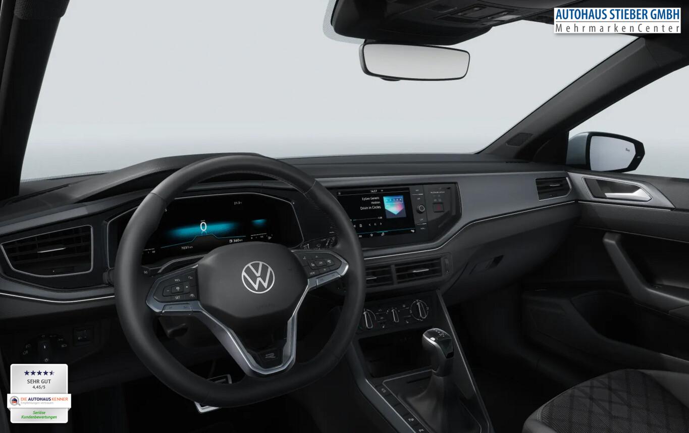 Fahrassistenz-Paket (Fahrassistenz-System: Parklenkassistent (Park Assist) / Fahrassistenz-System: Spurwechselassistent (Side Assist) / Insassen-Schutzsystem proaktiv), Rückfahrkamera (Rear View), Verglasung hinten abgedunkelt (75%), Ausstattungs-Paket: Licht + Sicht (Innenspiegel mit Abblendautomatik / Scheibenwischer mit Regensensor), Reserverad als Notrad (gewichts- und platzsparend) (Bordwerkzeug und Wagenheber), Raucher-Paket, Adaptive Geschwindigkeits-Regelanlage (ACC), Einparkhilfe vorn und hinten, Fahrassistenz-System: Fernlichtregulierung, Gepäckraumboden verstellbar 2-fach, Heckleuchten LED, Kopfstützen vorn, Lenkrad (3-Speichen, Leder) mit Multifunktion und Schaltfunktion, LM-Felgen 17 Zoll (York), Navigation in Verbindung mit dem Smartphone (über Apple Carplay / Android Auto /...), Reifen 215/45 R17, Scheinwerfer LED, Chrom-Paket 2 (Chromeinfassung Fensterheberschalter / Spiegelverstellung), Stoßfänger R-Line (Dachspoiler R-Line, schwarz lackiert), Ablagetasche an Vordersitzlehnen, Ambiente-Beleuchtung weiß, Anzeige für Waschwasserstand, Audiosystem Ready 2 Discover (inkl. Streaming & Internet, Touchscreen, Bluetooth), Außenspiegel und Türgriffe außen in Wagenfarbe, Dachhimmel Stoff, schwarz, Diebstahlsicherung für Räder (Felgenschlösser), Digital Cockpit (Instrumentenanzeige digital), Einstiegsleisten vorn R-Line, Fußraumbeleuchtung vorn LED, Gepäckraumbeleuchtung, Handbremshebelgriff Leder, Heckscheibenwischer, Innen- und Leseleuchten vorn und hinten LED, Innenausstattung: Dekoreinlagen Grey Anondized Matt, Karosserie: 5-türig, Kopfstützen hinten (3-fach), Lautsprecher (6), Lendenwirbelstützen vorn, Lenksäule (Lenkrad) mechan. verstellbar, Höhen-/Längsverstellung, Mobile Online Dienste Vorbereitung We Connect / We Connect Plus / VW Connect / VW Connect Plus, Motor 1,0 Ltr. - 85 kW TSI, Nebelschlussleuchte, Otto-Partikelfilter (OPF), Pedale Edelstahl, Radioempfang digital (DAB+), Schalt-/Wählhebelgriff Leder, Sitzbezug / Polsterung: Stoff R-Line, Sitze vorn höhenverstellbar, Sonnenblenden mit Spiegel (beleuchtet), Warnanlage für Sicherheitsgurte vorn und hinten, Mobiltelefon Schnittstelle mit kabelloser Ladefunktion, Multimedia-Schnittstelle 2 x USB (Typ C) vorn und 2 x USB-Ladeanschluß (Typ C) Mittelkonsole hinten, Anti-Blockier-System (ABS), Fahrassistenz-System: Fußgängererkennung, Antriebsart: Frontantrieb, Elektron. Stabilitäts-Programm (ESP) Bremsassistent, ASR/ABS, EDS, MSR, Getriebe 7-Gang - Doppelkupplungsgetriebe DSG, Klimaanlage, Airbag Fahrer-/Beifahrerseite, Beifahrerairbag abschaltbar, Fensterheber elektrisch vorn und hinten, Isofix-Aufnahmen für Kindersitz an Rücksitze (inkl. i-Size-Kindersitze), Mittelarmlehne vorn verschiebbar, mit Ablagefach, Rücksitzlehne geteilt, Seitenairbag vorn mit Center-Airbag und Kopf-Airbag-Einheit, Sitze: Sport-Komfortsitze vorn, Sitzheizung vorn, Zentralverriegelung mit Fernbedienung, Frontscheibe Verbundglas getönt, Fahrassistenz-System: Berganfahr-Assistent, Fahrassistenz-System: Verkehrszeichenerkennung, Notrufsystem, Servolenkung, Außenspiegel elektr. verstell-, heiz- und anklappbar mit Spiegelabsenkung rechts, Nebelscheinwerfer mit integriertem Abbiegelicht, Fahrassistenz-System: Müdigkeitserkennung, Fahrassistenz-System: Spurhalteassistent (Lane Assist), Fahrassistenz-System: Umfeldbeobachtungssystem (Front assist) mit City-Notbremsfunktion, Reifenkontroll-Anzeige, Start/Stop-Anlage mit Rekuperation
