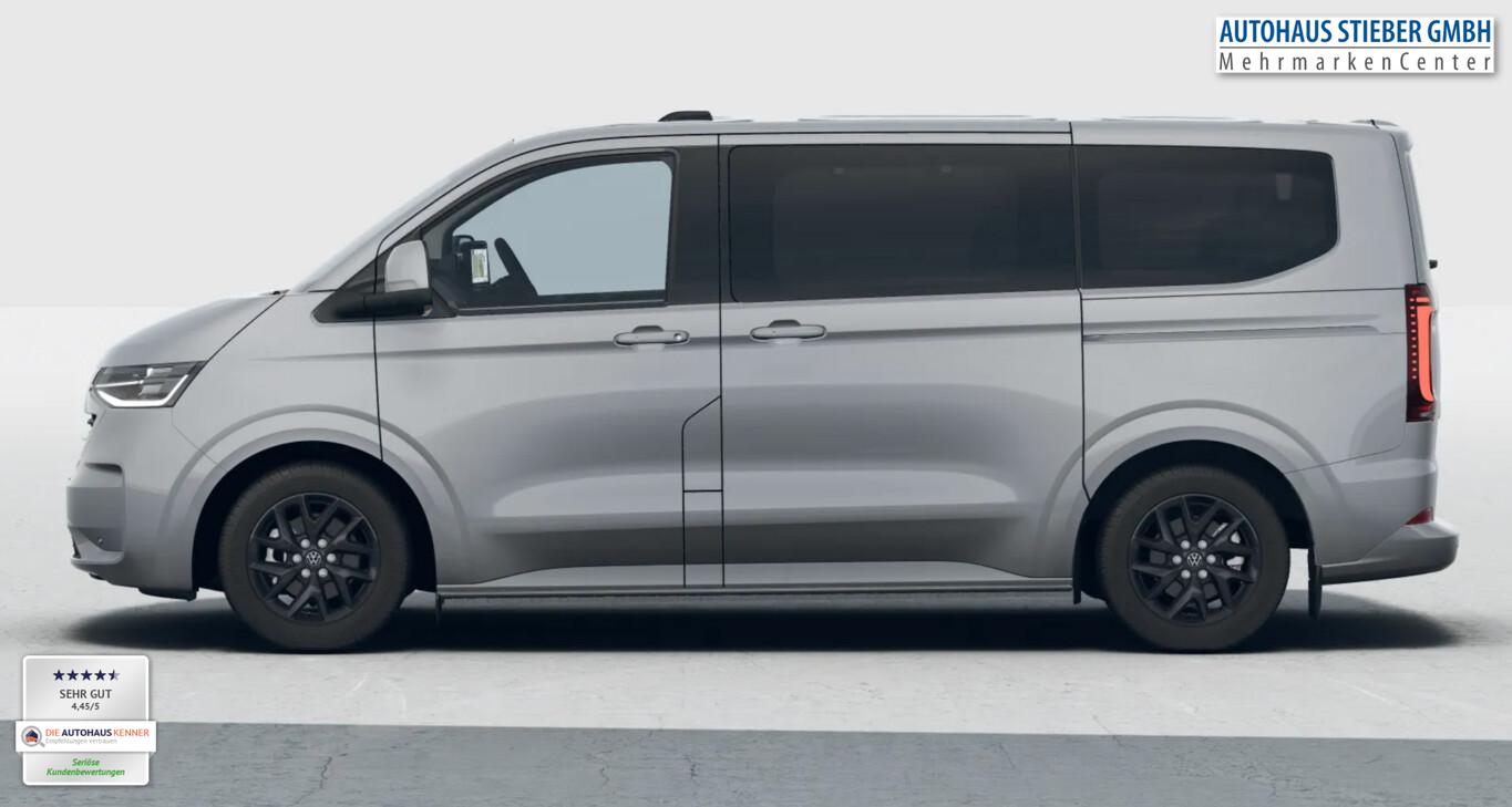 10 Lautsprecher, 12V-Steckdose an D-Säule rechts, 12V-Steckdose in der Mittelkonsole, 2 Verzurrösen, 2. Reihe mit 3 Einzelsitzen, 3. Reihe mit 3er-Sitzbank, Rückenlehne klappbar, Airbag Fahrer-/Beifahrerseite, Beifahrerairbag abschaltbar, Armlehnen vorn, Audio-Navigationssystem mit Touchscreen-Farbdisplay 13" inkl. App-Connect Wireless (Apple CarPlay / Android Auto), Außenspiegel elektr. verstell-, heiz- und anklappbar, Einparkhilfe vorn und hinten, Einstiegleisten Schiebetüren Metall, beleuchtet, Elektron. Stabilitäts-Programm (ESP), Fahrassistenz-System: Geschwindigkeits-Regelanlage mit Intelligentem Geschwindigkeits-Assistent, Fahrassistenz-System: Notbrems-Assistent, Fußgänger- und Fahrraderkennung, Ausweichunterstützung und Abbiege-Assistent, Handschuhfach beleuchtet, Kombiinstrument digital, Lenkrad (Kunstleder) mit Multifunktion, LM-Felgen 6,5x17 (Le Mans, schwarz), Notrufsystem eCall, Reifen 215/60 R17, Rückfahrkamera, Schadstoffarm nach Abgasnorm Euro 6e (EU6 EB), Schmutzfänger vorn und hinten, Seitenairbag / Kopfairbag (Curtain-Airbag) vorn und Kopfairbag (Curtain-Airbag) hinten, Sicherheitsinnenspiegel, manuell abblendbar, Sitzbezug / Polsterung: Kunstleder, Sitze vorn mit Lendenwirbelstütze, verstellbar, Sitze vorn verstellbar (6-fach), Sitzheizung vorn, Sonnenschutzrollos an den Seitenfenstern (2. Reihe), Startanlage / Zentralverriegelung Keyless Access ohne Safesicherung, Stoßfänger vorn und hinten in Wagenfarbe, USB-Schnittstellen vorn und hinten, Vorbereitung Anhängerkupplung, Wegfahrsperre (elektronisch), Heckscheibe heizbar, Karosserie/Aufbau: Bus, Motor 2,0 Ltr. - 110 kW TDI, Schiebetüren Lade-/Fahrgastraum links/rechts inkl. Zuziehhilfe, Antriebsart: Frontantrieb, Getriebe Automatik - (8-Stufen), Klimaanlage Fahrerhaus und Fahrgastraum (3-Zonen mit autom. Regelung) mit Digitales Bedienteil im Fahrgastraum, Zusatzheizung elektrisch, Verglasung hinten abgedunkelt, Fahrassistenz-System: Verkehrszeichenerkennung mit Falschfahrer-Warnfunktion, Fahrassistenz-System: Dynamische Fernlichtregulierung (Dynamic Light Assist), Heckleuchten LED mit exklusiver Lichtsignatur, Matrix-LED-Scheinwerfer (IQ.Light) inkl. Coming- und Leaving-Home, Fahrassistenz-System: Spurhalteassistent (Lane Assist)