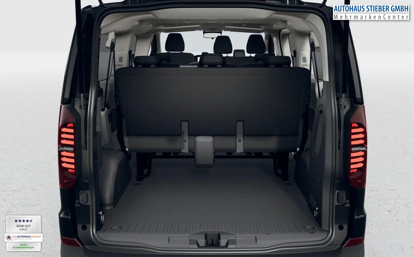 Sitze im Lade-/FG-Raum: 1.Reihe, 3 Einzelsitze klapp- und wickelbar und 2.Reihe, 3er-Sitzbank, 6x Isofix, 4x Top Tether, Fahrassistenz-Paket Plus (Rückfahrkamera / Fahrassistenz-System: Einparkhilfe vorn und hinten), LM-Felgen 6,5x16 (Montreal, silber), Anhängerkupplung: Kugelkopf fest (Anhänger-Stabilisierungs-Programm), Klimaanlage Fahrerhaus (1-Zonen mit autom. Regelung) Fahrgastraum (mit manueller Regelung und Bedienteil), Sitz-Paket 12A: Fahrersitz und Beifahrerdoppelsitz inkl. Seitenairbag, Stoff (Sitze im Fahrerhaus: Beifahrerdoppelsitz mit Stau-/Ablagefach / Sitze im Fahrerhaus: Fahrersitz 4-fach verstellbar), Verglasung hinten abgedunkelt, Kraftstofftank: 70 Ltr., Brillenfach im Dachhimmel Fahrerseite, Dachhaltegriff Beifahrerseite, Einstiegsgriff B-Säule Fahrgastraum, Ausstattungs-Paket: Exterieur-Paket, Anbauteile genarbt, Kühlergrill in Wagenfarbe, Einstiegsleisten Schiebetür (Kunststoff) beleuchtet, Fahrassistenz-System: Müdigkeitserkennung, Generator 230 A, Navigation in Verbindung mit dem Smartphone (über Apple Carplay / Android Auto /...), Radioempfang digital (DAB), Reifendruck-Kontrollsystem, Rußpartikelfilter, Sommerreifen 215/65 R16, Steckdose (12V-Anschluss) an D-Säule auf Bodenhöhe hinten rechts, Steckdose (12V-Anschluss) im Fahrerhaus, Außenspiegel und Türgriffe außen schwarz genarbt, Batterie 80 Ah, Bodenbelag: Gummi (vorn und hinten), Digital Cockpit (Instrumentenanzeige Digital), Fenster im Lade-/FG-Raum: - feststehend, hinten links, Fenster im Lade-/FG-Raum: - feststehend, hinten rechts, Fenster im Lade-/FG-Raum: - feststehend, vorn links, Fenster im Lade-/FG-Raum: - feststehend, vorn rechts, Heckklappe, Heckscheibe heizbar, Heckscheibenwischer mit Waschanlage, Innenleuchten im Fahrerhaus: LED, Innenleuchten im Lade-/FG-Raum: LED (Gepäckraum), Innenspiegel abblendbar, Karosserie/Aufbau: Kombi Standard, Keyless-Start ohne Safesicherung, Kopfstützen vorn höhenverstellbar, Lautsprecher (6), Mittelkonsole, schmal mit Getränkehalter und Ablage, Motor 2,0 Ltr. - 110 kW TDI, PKW-Zulassung, Radio mit Touchscreen-Farbdisplay 13" mit App-Connect Wireless, Radstand 3500 mm, Schiebetür Lade-/Fahrgastraum rechts, Schmutzfänger vorn, Sitzbezug / Polsterung: Stoff, Stoßfänger vorn und hinten schwarz genarbt, Verkleidung im Lade-/FG-Raum: Kunststoff halbhoch, Mobiltelefon Schnittstelle Bluetooth, USB-Anschluss 2-fach im Fahrerhaus und 2-fach im Fahrgastraum, Anti-Blockier-System (ABS), Antriebsart: Allradantrieb, Elektron. Stabilitäts-Programm (ESP) mit Bremskraftverstärker elektro-mechanisch, Wegfahrsperre (elektronisch), Getriebe Automatik - (8-Stufen), Airbag Fahrer-/Beifahrerseite, Beifahrerairbag abschaltbar, Seitenairbag / Kopfairbag (Curtain-Airbag) vorn und Kopfairbag (Curtain-Airbag) hinten, Verzurrösen (4), Zentralverriegelung, Wärmeschutzverglasung, Fahrassistenz-System: Geschwindigkeits-Regelanlage mit Intelligenter Geschwindigkeits-Assistent, Fahrassistenz-System: Verkehrszeichenerkennung mit Falschfahrer-Warnfunktion, Notrufsystem, Lenkrad mit Multifunktion, Außenspiegel elektr. verstell- und heizbar, Fahrassistenz-System: Fernlichtregulierung (Light Assist), Heckleuchten LED, LED-Scheinwerfer inkl. LED-Tagfahrlicht, Fahrassistenz-System: Notbrems-Assistent, Fußgänger- und Fahrraderkennung, Ausweichunterstützung und Abbiege-Assistent, Fahrassistenz-System: Spurhalteassistent (Lane Assist)