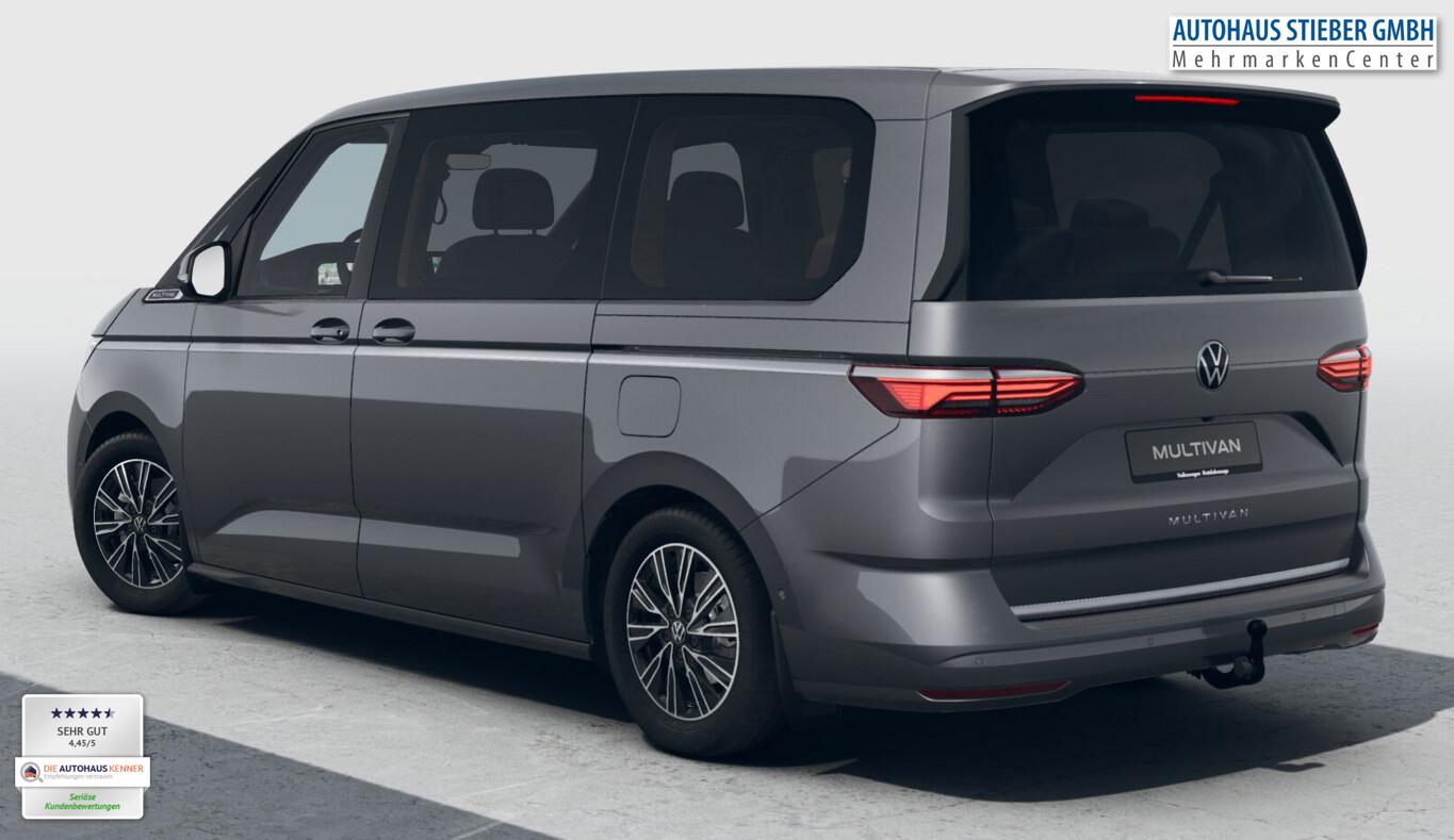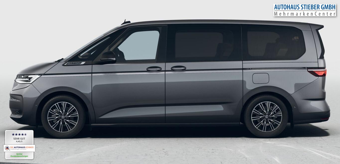 Audio-Navigationssystem Discover Pro (Touchscreen-Farbdisplay 10", inkl. Streaming & Internet), Anhängerkupplung klappbar (elektr. Entriegelung), Fahrassistenz-Paket Basic (Service-System: Intelligente Fahrzeugvernetzung (Car2X) / Fahrassistenz-System: Autom. Distanzregelung (ACC inkl. Stop&Go-Funktion) / Fahrassistenz-System: Spurwechselassistent (Side Assist) mit Auspark-Assistent und Ausstiegswarnung), Schließ-/Startsystem Keyless Advanced mit Safesicherung, Verglasung hinten abgedunkelt (65 %), Schmutzfänger vorn und hinten, Handschuhfach abschließbar, Heckklappe mit Soft-Close-Funktion, LM-Felgen 6,5x17 (Dundrod, schwarz), Reifen 235/55 R17, Schadstoffarm nach Abgasnorm Euro 6e (EU6 EA), Mobile Online Dienste Vorbereitung We Connect und We Connect Plus (Vorbereitung Onlinedienste), Sitz-Paket: 7-Sitzer, 2-2-3 (2 Einzelsitze, 2 Einzelsitze, 3 Einzelsitze) (Sitze im Lade-/FG-Raum: 1.Reihe, 2 Einzelsitze / Sitze im Lade-/FG-Raum: 2.Reihe, 3 Einzelsitze), Außenspiegel schwarz lackiert, Blinkleuchten LED in Außenspiegel integriert, Bodenbelag im Lade-/Fahrgastraum Teppich, Chromleisten seitlich und Heckklappe unten, Digital Cockpit Pro (Instrumentenanzeige Digital), Fahrassistenz-System: Ausweich-Assistent und Abbiege-Assistent, Fenster im Lade-/FG-Raum: - feststehend, vorn links, Fenster im Lade-/FG-Raum: - feststehend, vorn rechts, Frontscheibe Verbundglas getönt, Funkschlüssel (2), Handschuhfach beleuchtet, Innenausstattung: Dekoreinlagen Dark Woodgrain Optic, Innenleuchtenkonzept im Fahrgastraum, Innenspiegel mit Abblendautomatik, Intelligent Speed Assist inkl. Geschwindigkeitsbegrenzer, Karosserie/Aufbau: Bus, Ladekantenabdeckung in Kunststoff, mit Edelstahleinsatz, Laderaumunterteilung und Gepäcksicherungsnetz, Lautsprecher (8), Lichtleiste zwischen Scheinwerfer, Mobile Online Dienste App-Connect inkl. App-Connect Wireless (Apple CarPlay, Android Auto), Motor 2,0 Ltr. - 110 kW TDI, Pedale Edelstahl, Radioempfang digital (DAB+), Radstand 3124 mm, Schlechtwetter-Licht, Schubladen unter Rücksitze außen und 2 Abfallbehälter, Sitzbezug / Polsterung: ArtVelours / Kunstleder, Sitze im Fahrerhaus: 4 Armlehnen, Lendenwirbelstützen elektr. und Klapptische, Sitze im Fahrerhaus: Beifahrersitz höhenverstellbar, Sitze im Fahrerhaus: Fahrersitz höhenverstellbar, Sitze im Lade-/FG-Raum: 1.Reihe mit 2 Armlehnen innen (abnehmbar), Sitze im Lade-/FG-Raum: 2.Reihe mit Vorbereitung für 2 Armlehnen innen, Sonnenblenden mit Spiegel (beleuchtet), Umfeldbeleuchtung seitlich mit Projektionsfunktion, Umfeldleuchte in Heckklappe und Ambiente-Beleuchtung (30 Farben), Warnanlage für Sicherheitsgurte vorn und hinten, Mobiltelefon Schnittstelle Bluetooth, Multimedia-Schnittstelle 2 x USB vorn und 4 x USB-Ladeanschluß Fahrgastraum (Typ C), Sprachsteuerungs-System, Anti-Blockier-System (ABS), Fahrassistenz-System: Bremsassistent (HBA), Antriebsart: Frontantrieb, Elektron. Stabilitäts-Programm (ESP) mit Bremskraftverstärker elektro-mechanisch, Wegfahrsperre (elektronisch), Getriebe 7-Gang - Doppelkupplungsgetriebe DSG, Klimaanlage Climatronic 3-Zonen inkl. Fondbedienung, Zusatzheizung, Airbag Fahrer-/Beifahrerseite, Beifahrerairbag abschaltbar, Fensterheber elektrisch vorn, Seitenairbag / Kopfairbag / Center-Airbag vorn und Kopfairbag hinten, Sitze im Fahrerhaus: Fahrer- und Beifahrersitz heizbar, Schiebetür Lade-/Fahrgastraum links elektr. betätigt, Schiebetür Lade-/Fahrgastraum rechts elektr. betätigt, Fahrassistenz-System: Verkehrszeichenerkennung, Rückfahrkamera, Notrufsystem, Lenkrad (Leder) mit Multifunktion und Schaltfunktion, Servolenkung elektro-mechanisch, geschwindigkeitsabhängig, Fahrassistenz-System: Dynamische Fernlichtregulierung (Dynamic Light Assist), Matrix-LED-Scheinwerfer (IQ.Light), Regensensor, Tagfahrlicht und Assistenzfahrlicht mit Coming Home / Leaving Home, Fahrassistenz-System: Parklenkassistent (Park Assist) inkl. Einparkhilfe vorn und hinten, Fahrassistenz-System: Ablenkungs- und Müdigkeitserkennung, Fahrassistenz-System: Spurhalteassistent (Lane Assist), Reifenkontroll-Anzeige, Diebstahl-Warnanlage + Innenraumüberwachung / Abschleppschutz + Back-up-Horn, Rußpartikelfilter